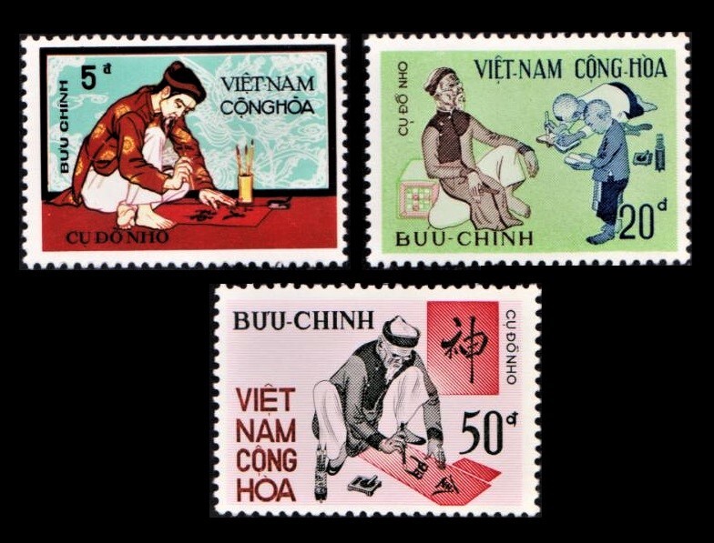 la426y3-2v 南ベトナム1972年 書道など・3枚完