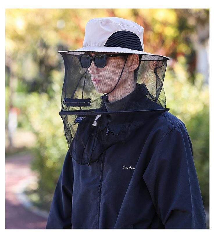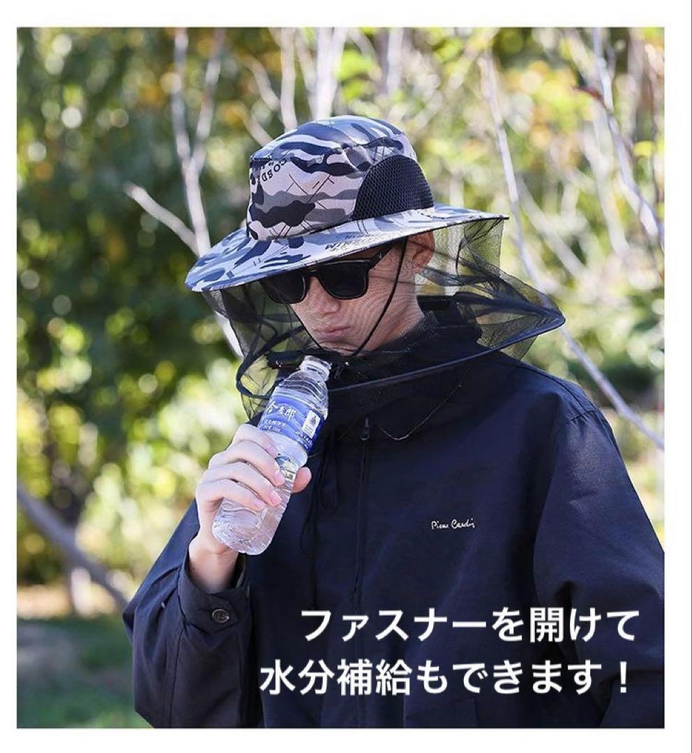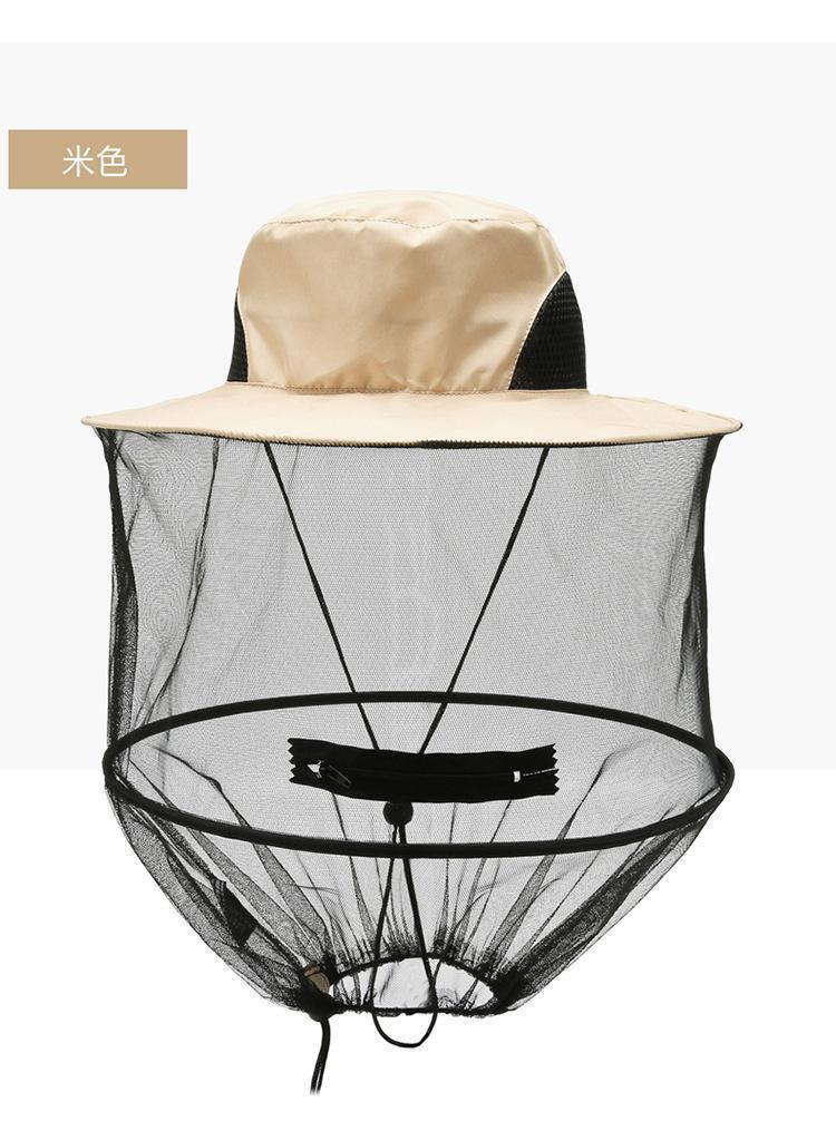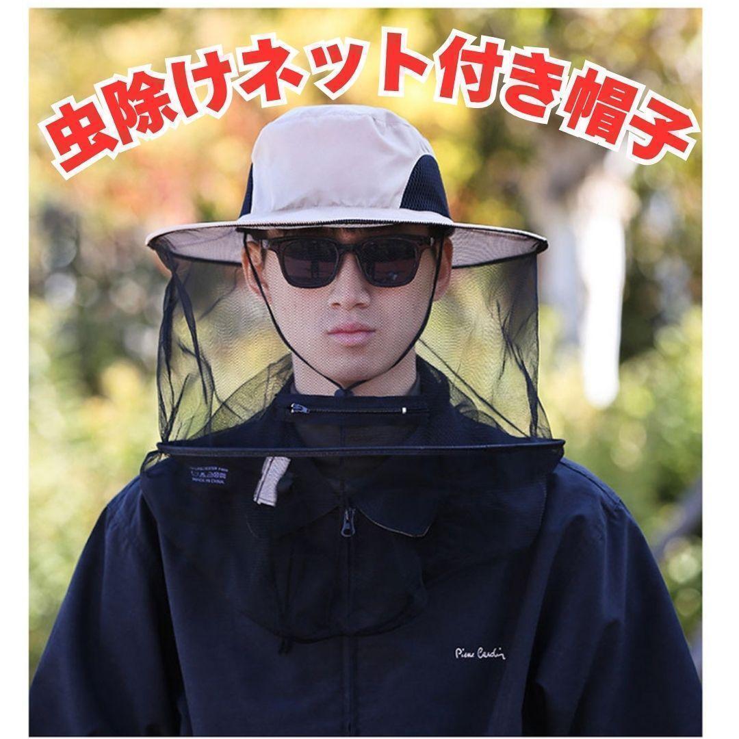 防虫ネット付き 帽子 ベージュ 男女兼用 アウトドア 登山 釣り 農作業 ガーデニング 草刈り ハチ対策 UVカット
