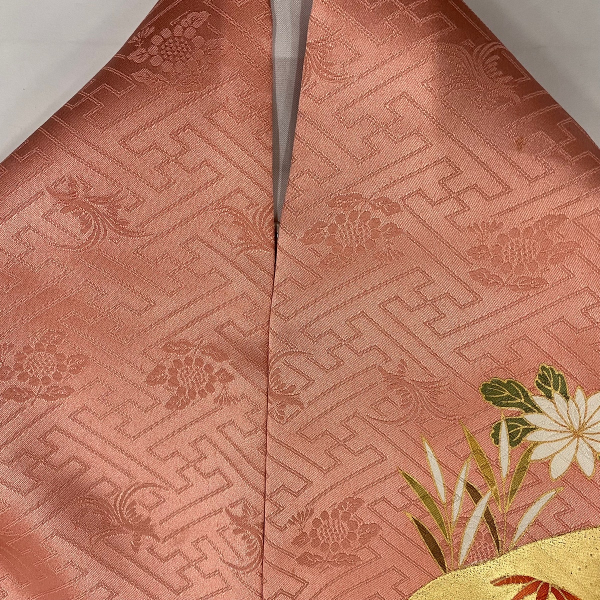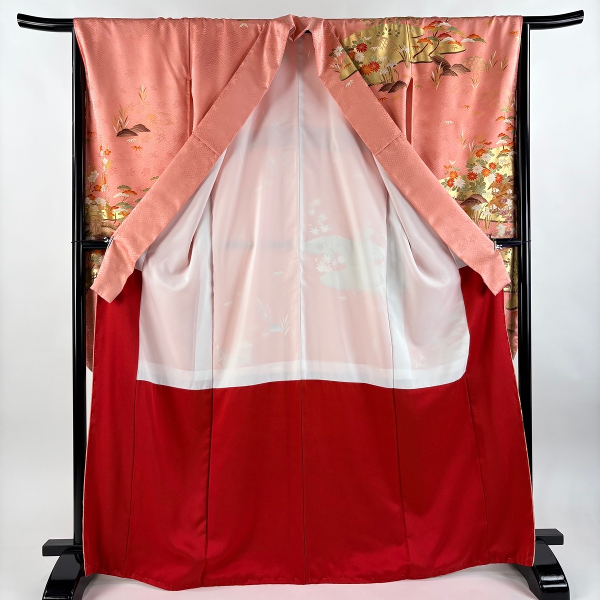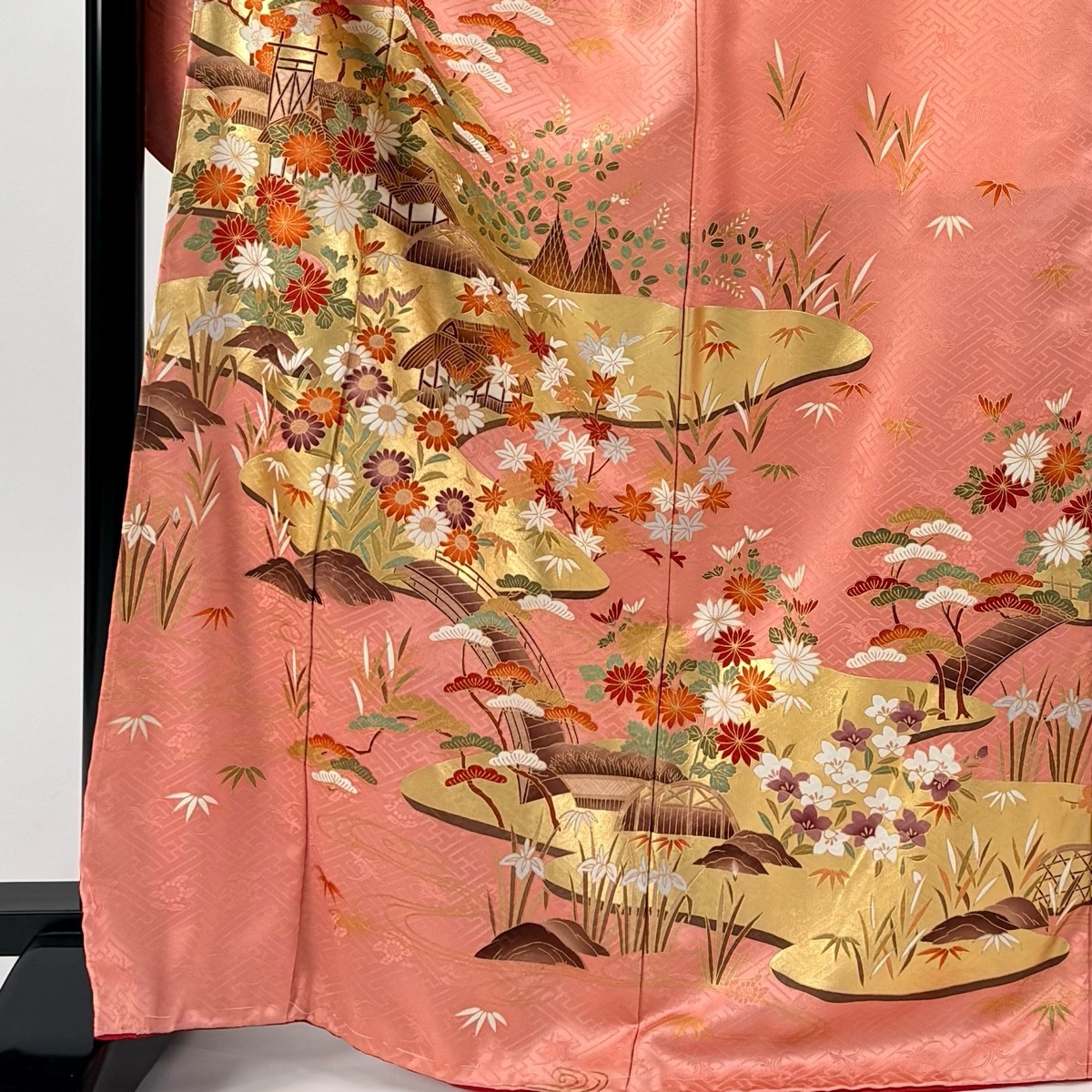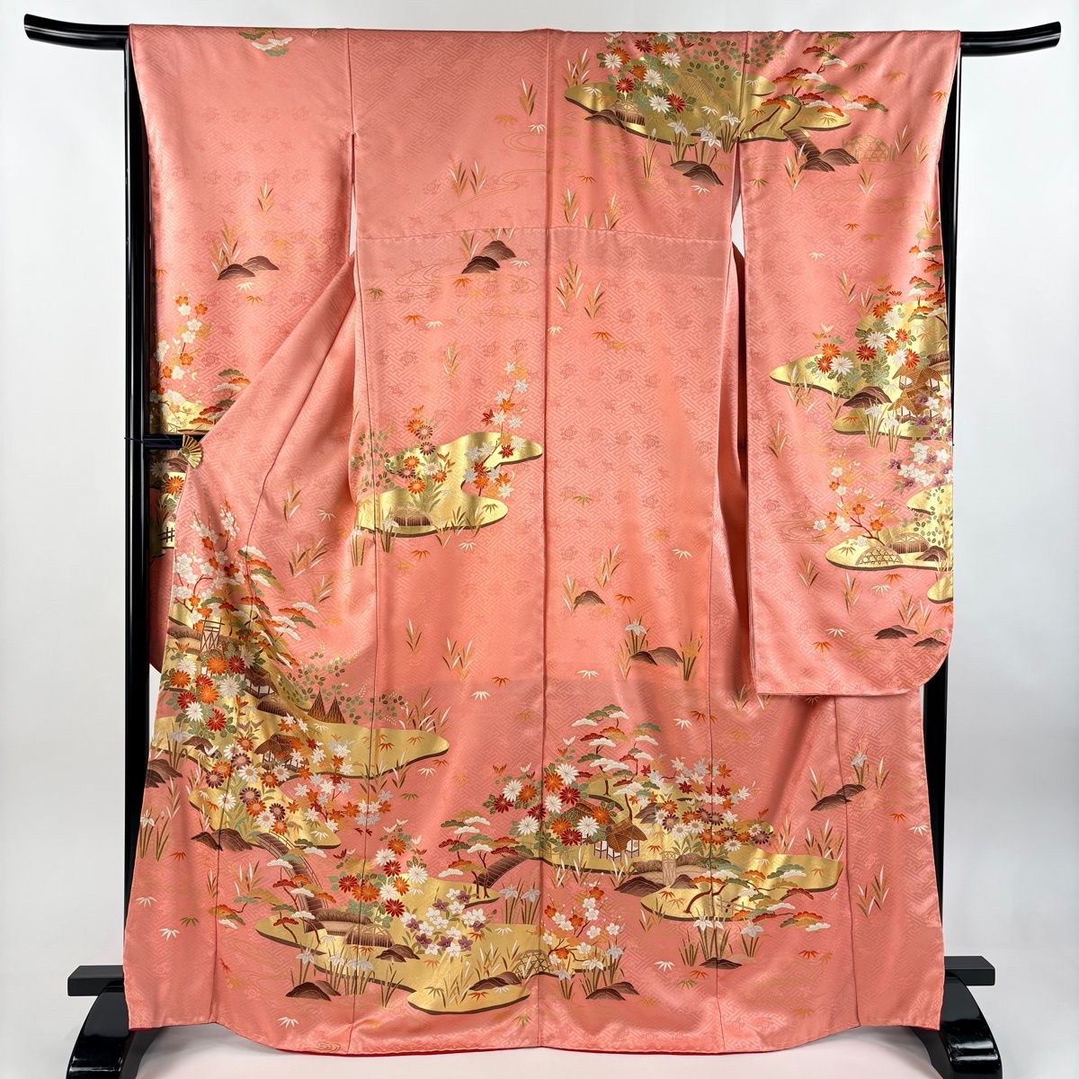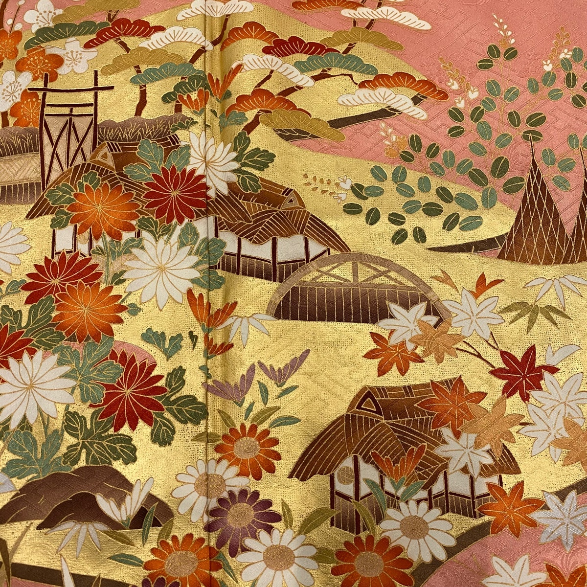 | 振袖 美品 秀品 松竹梅 家屋 金彩 ・ ピンク 袷 身丈168 裄丈66 M 正絹 【中古】 |