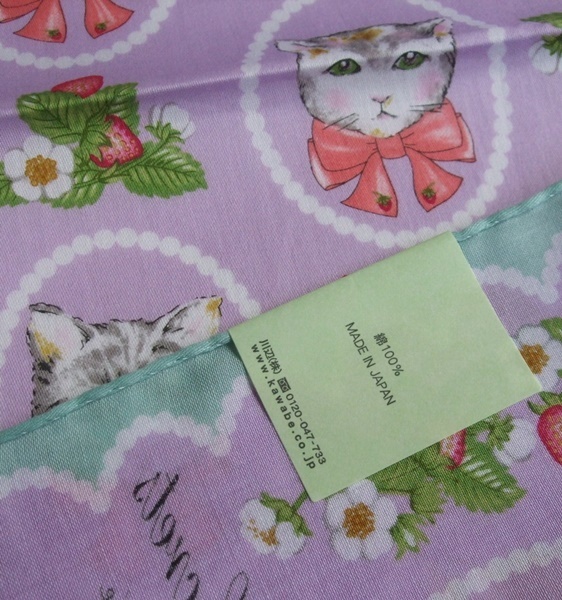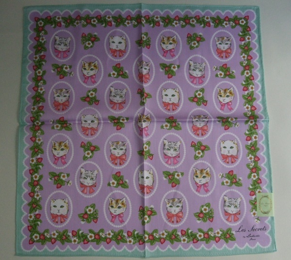 LADUREE ラデュレ ハンカチ 猫 野苺 未使用品 百貨店 薄紫系 税込定価 1100円 日本製 キャット ワイルド・ストローベリ