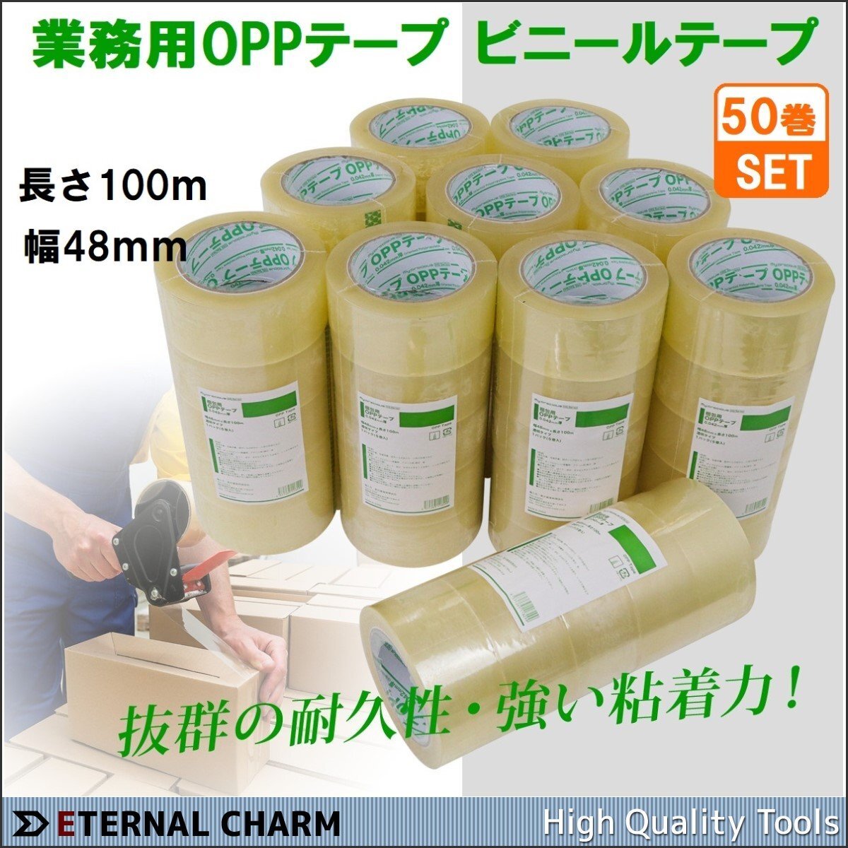 【送料無料】業務用 OPPテープ 梱包用 透明ビニールテープ 粘着テープ 店舗用品 ガムテープ 幅48mm×長100m (1箱50巻入)