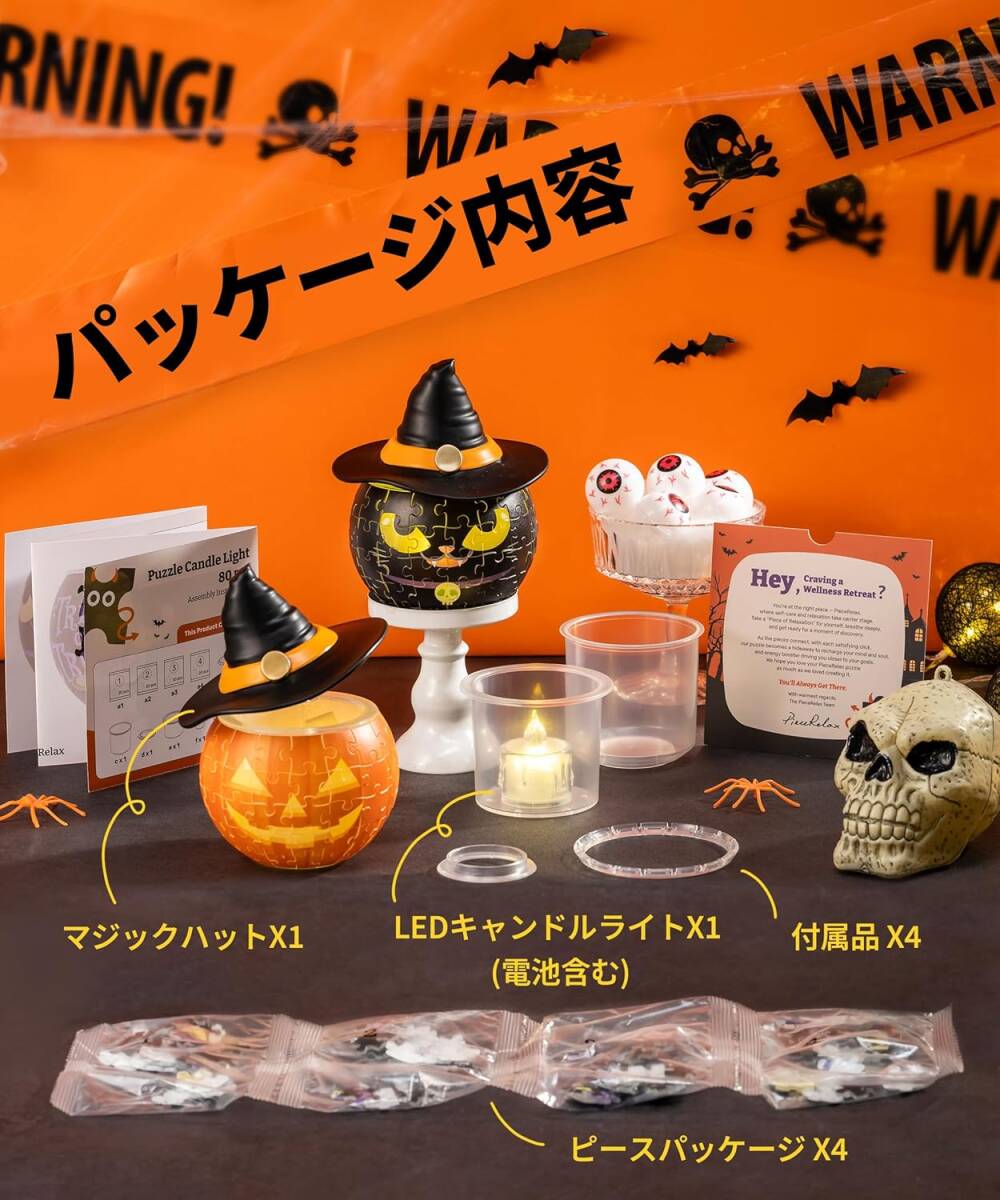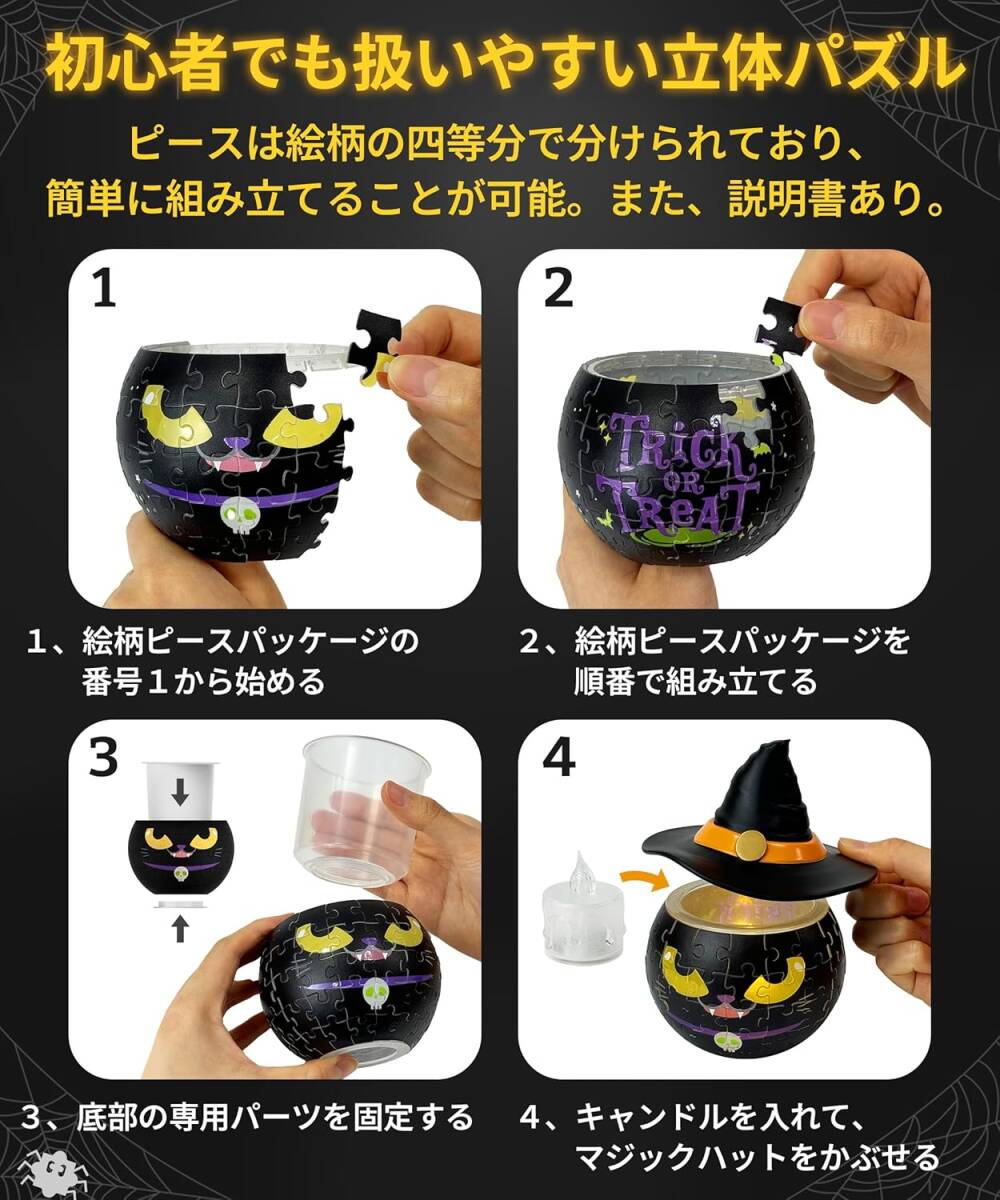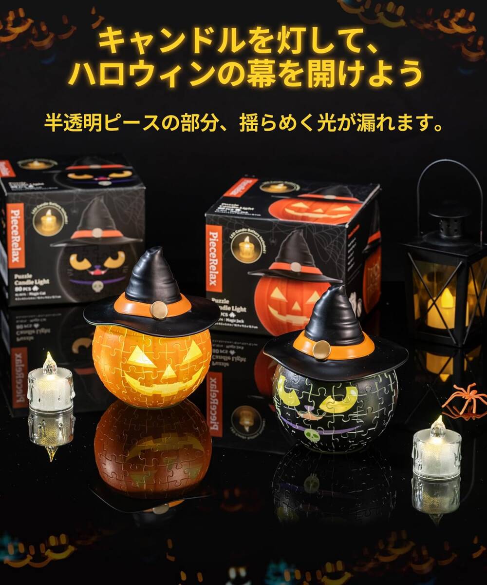 黒猫柄 ピースリラックス 80ピース キャンドルライトパズル【マジック・ジャック】(11X12X14cm) プラ製 3D立体 ハロウィン