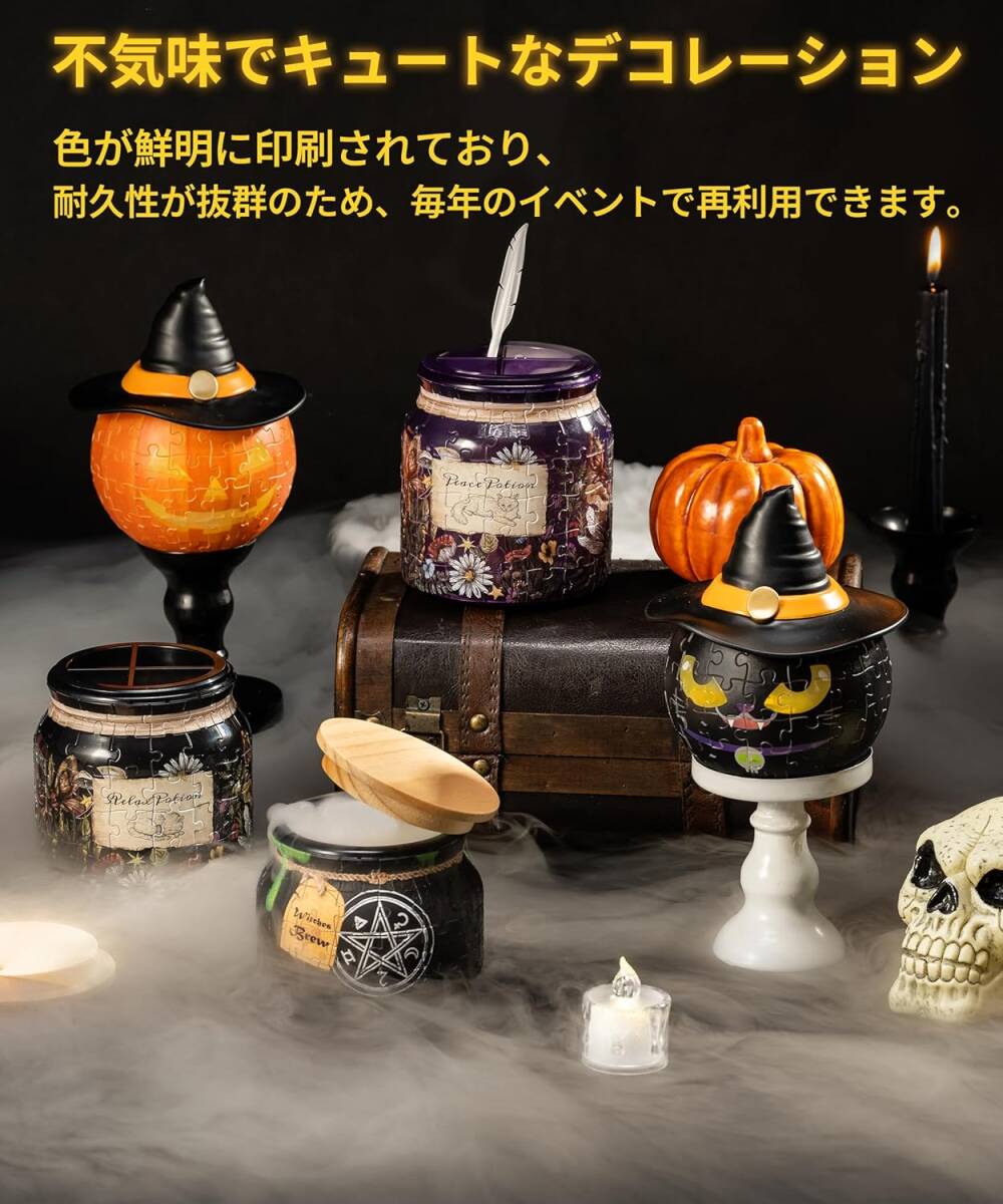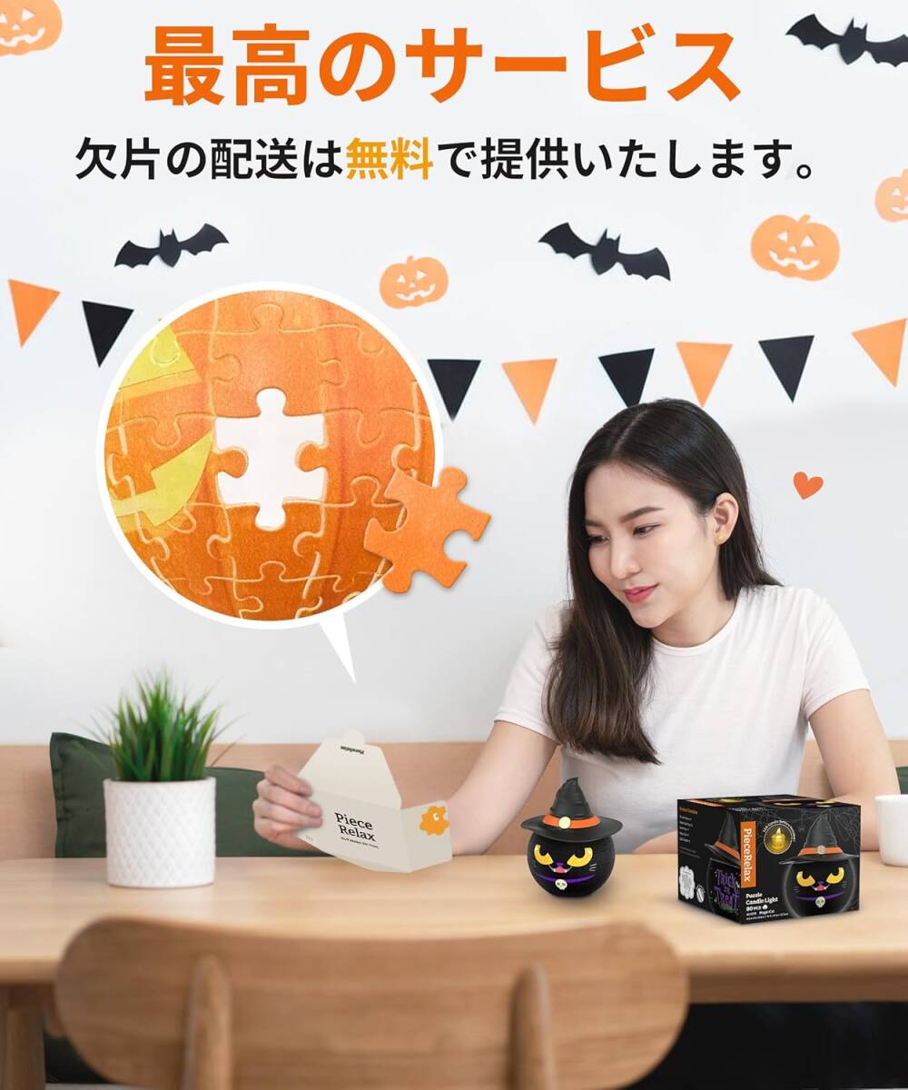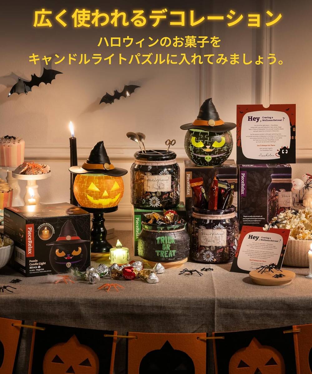 黒猫柄 ピースリラックス 80ピース キャンドルライトパズル【マジック・ジャック】(11X12X14cm) プラ製 3D立体 ハロウィン