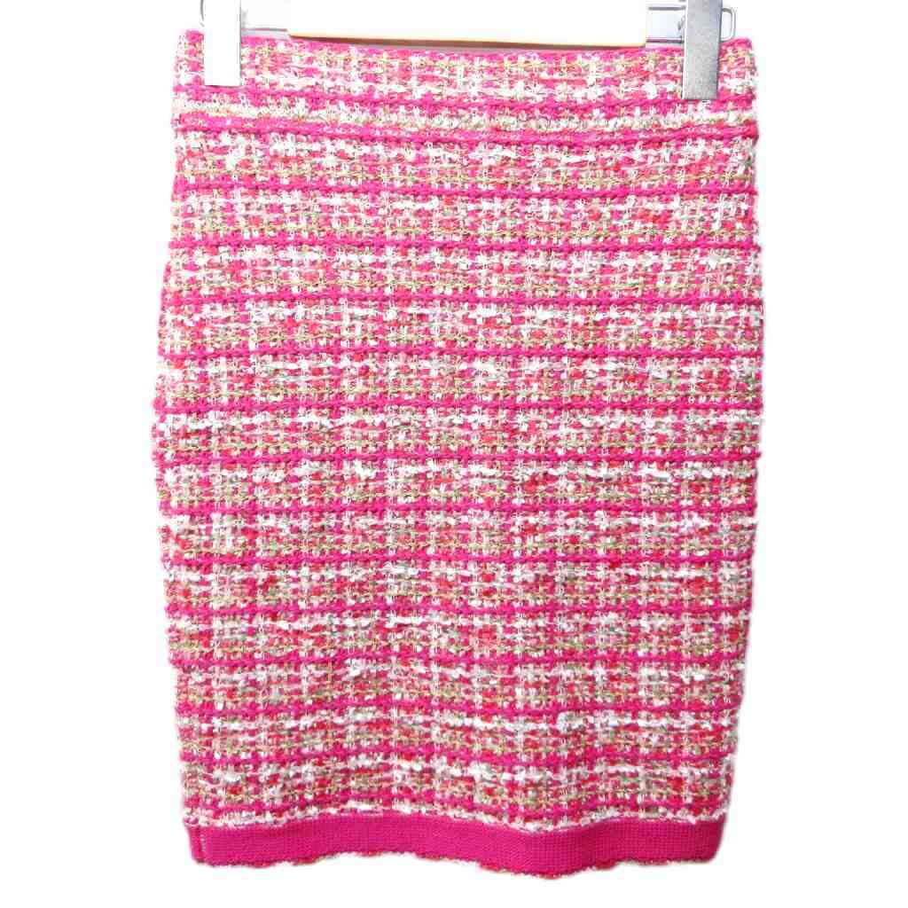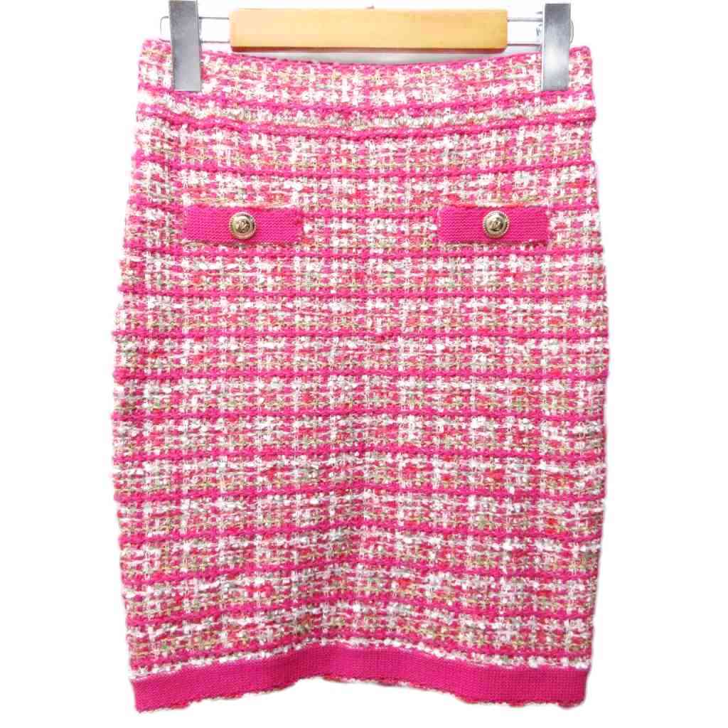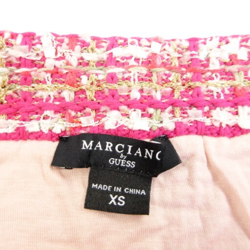 ゲス GUESS MARCIANO 美品 ツイード スカート 金ボタン ラメ グリッター ひざ丈 XS ピンク 系 IBO79 1005 レディース