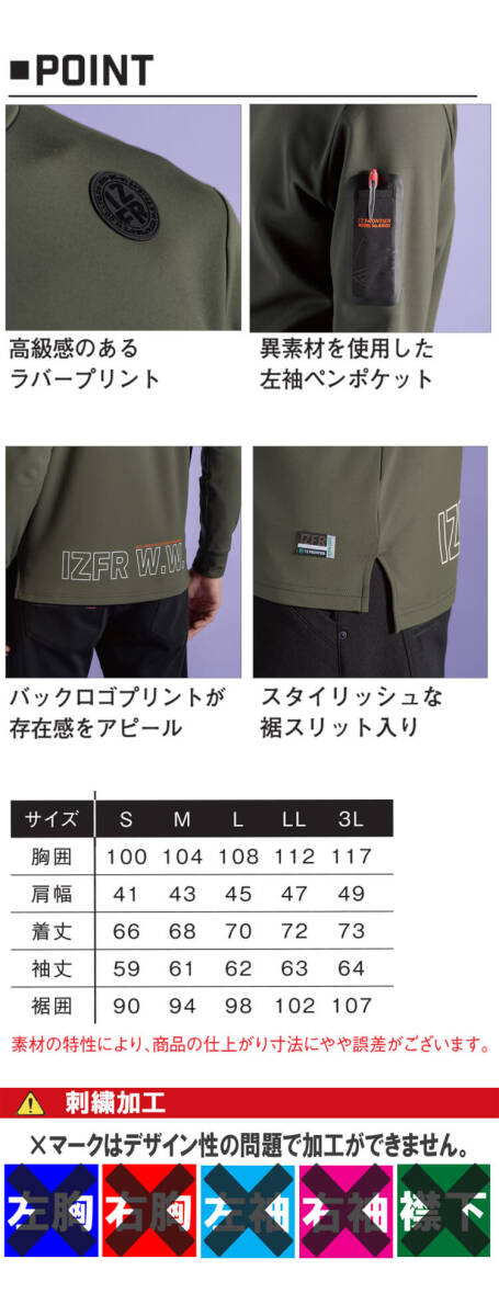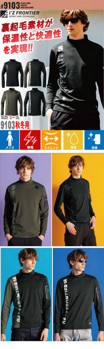 アイズフロンティア 裏起毛ストレッチ長袖モックネックシャツ 9103 秋冬 S 37アナザーブラック