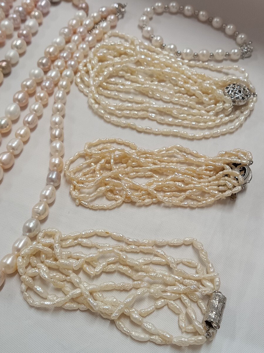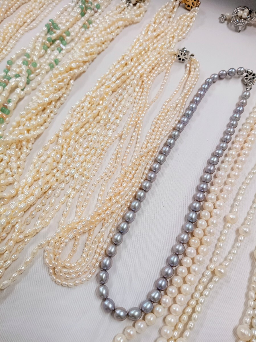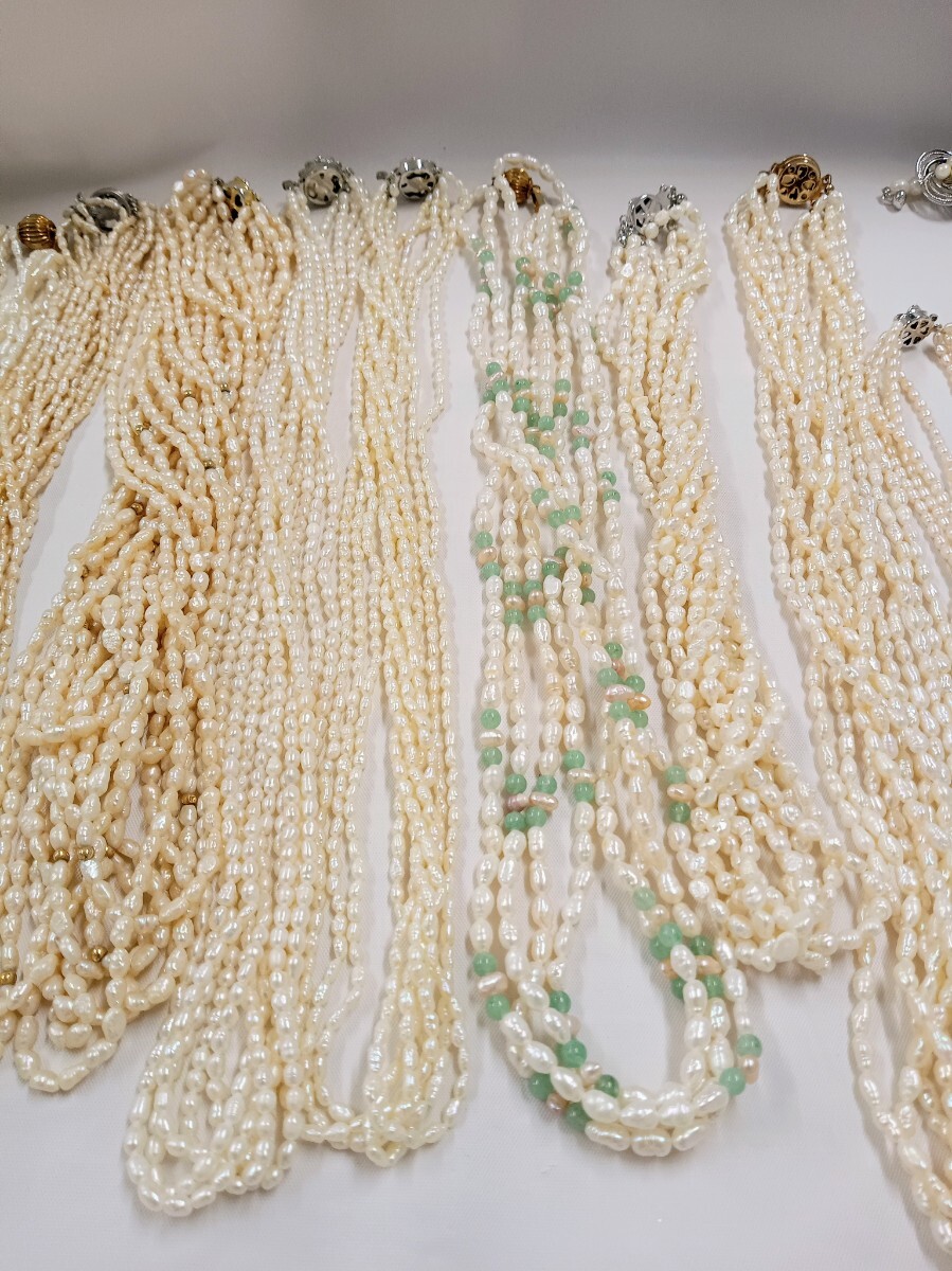 ★SV金具パール ネックレス31本、ブレス4本おまとめ 約1.4Kgライスパール 淡水 アコヤ 1円スタート★当方管理番号 KA10-①