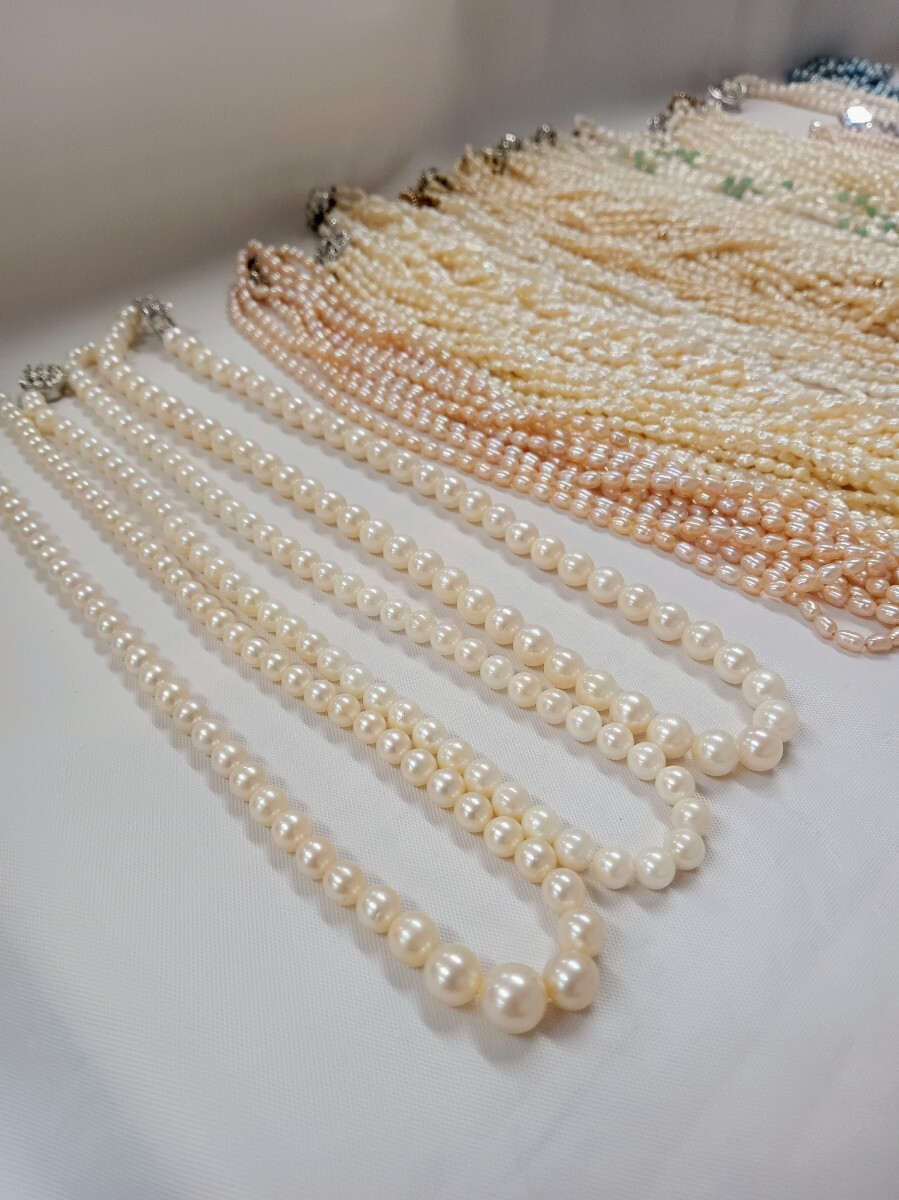 ★SV金具パール ネックレス31本、ブレス4本おまとめ 約1.4Kgライスパール 淡水 アコヤ 1円スタート★当方管理番号 KA10-①
