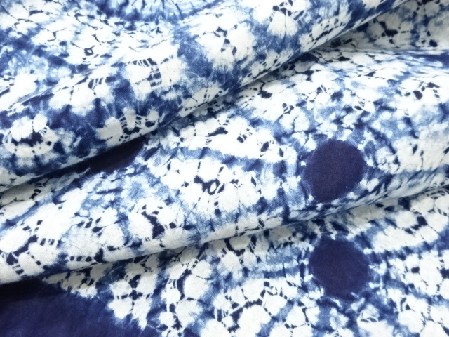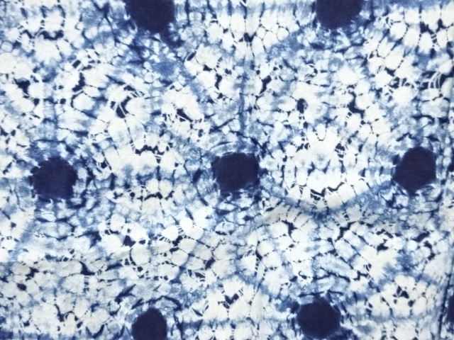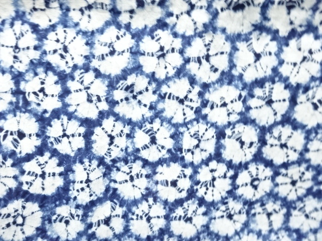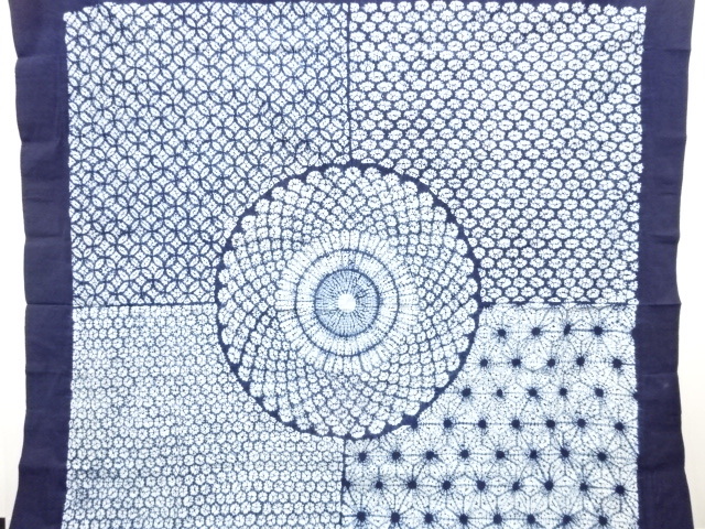 本藍 絞り 花に古典柄 大判 風呂敷 (AJI2K-013)