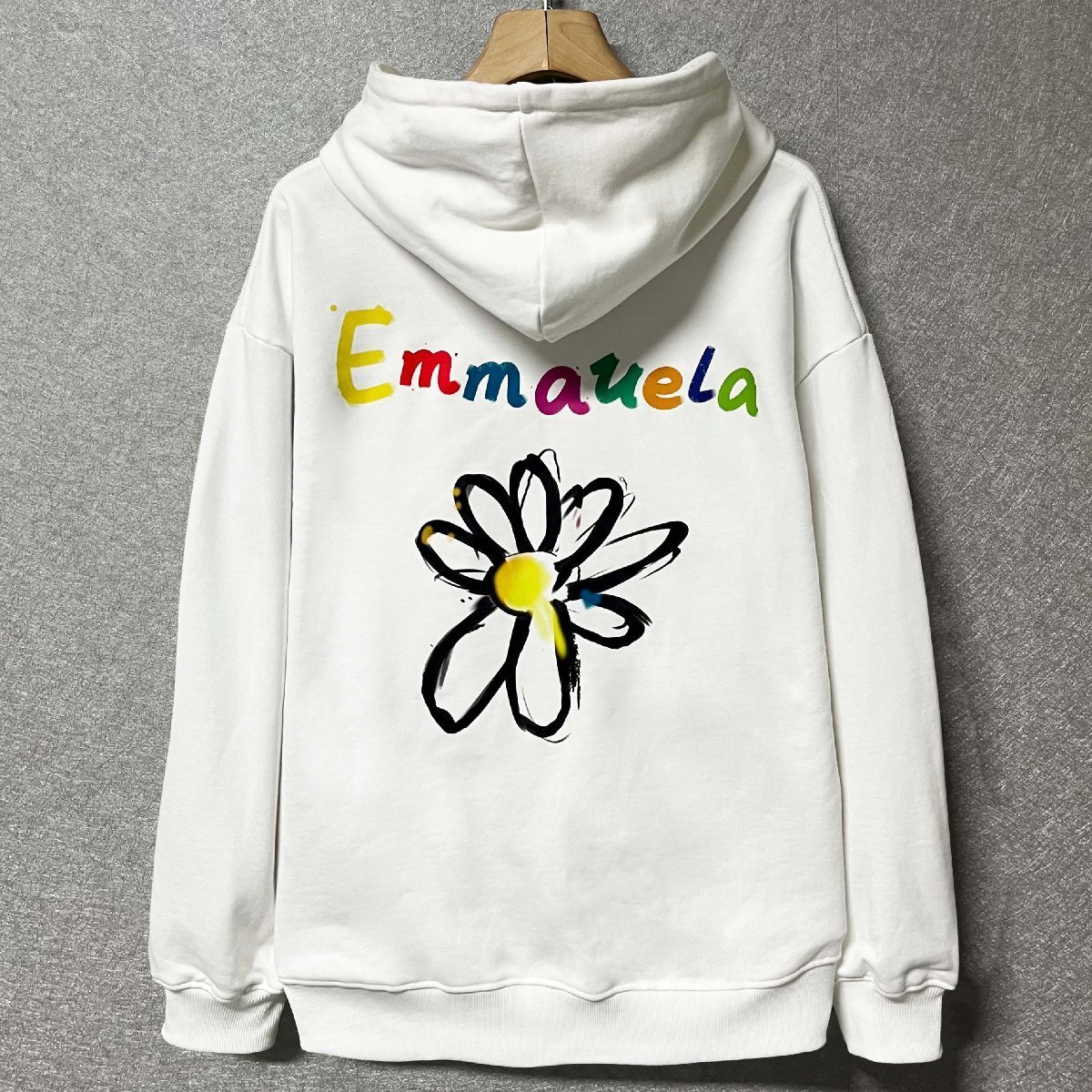 上品・パーカー 定価4万◆Emmauela・イタリア・ミラノ発◆綿100% ソフト 保温 快適 花柄 ゆったり カットソー トップス 長袖 普段着 L/48サイズ