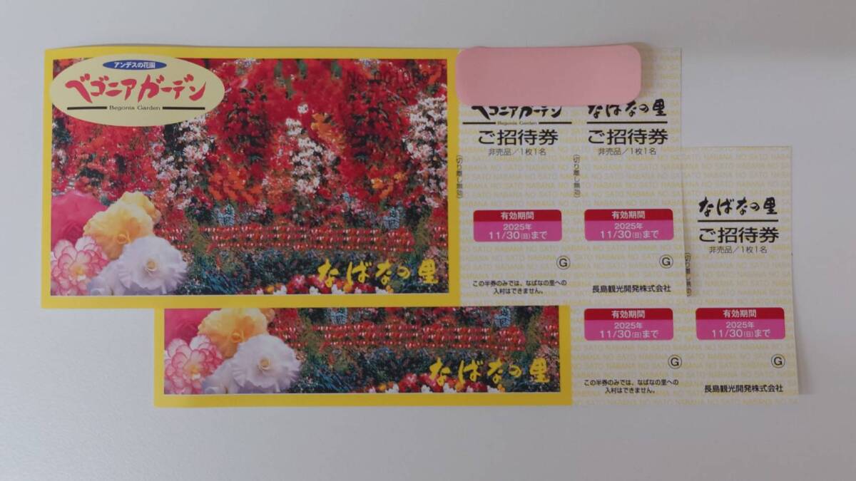 【送料込み】【未使用】なばなの里・ベゴニアガーデン 招待券 2枚セット 有効期限:2025年11月30日