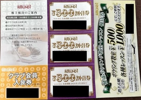 最新のラウンドワンの株主優待券です。