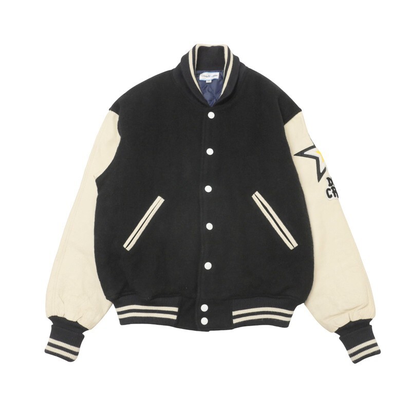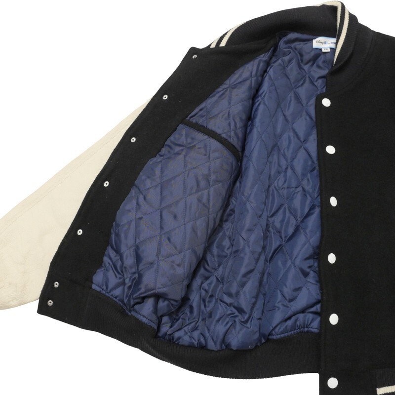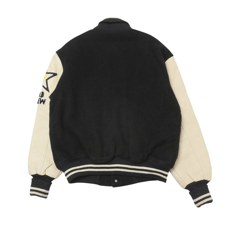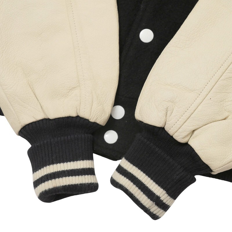 | TI9057□DISNEY BB on FLET'S ディズニー ウール レザースリーブ 袖:豚革 スタジアムジャンパー スタジャン ブルゾン サイズ160 黒×白系 | |||