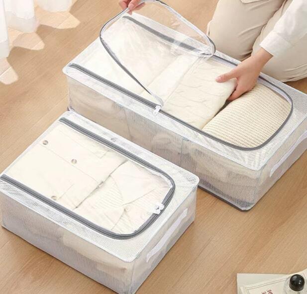 両側には取っ手が付いているので持ち運びに便利、クローゼットやベッド下の収納にもおすすめ♪