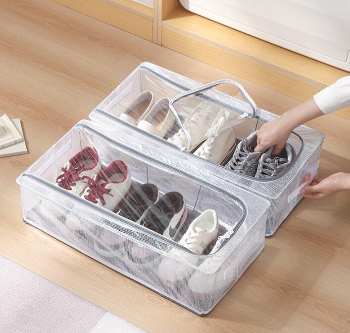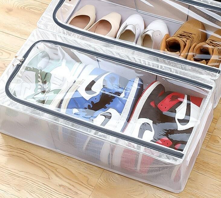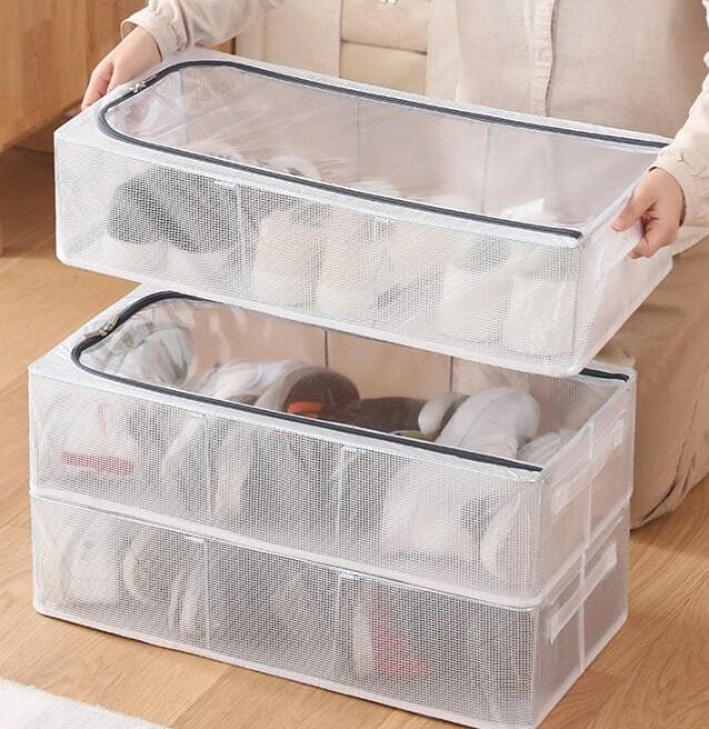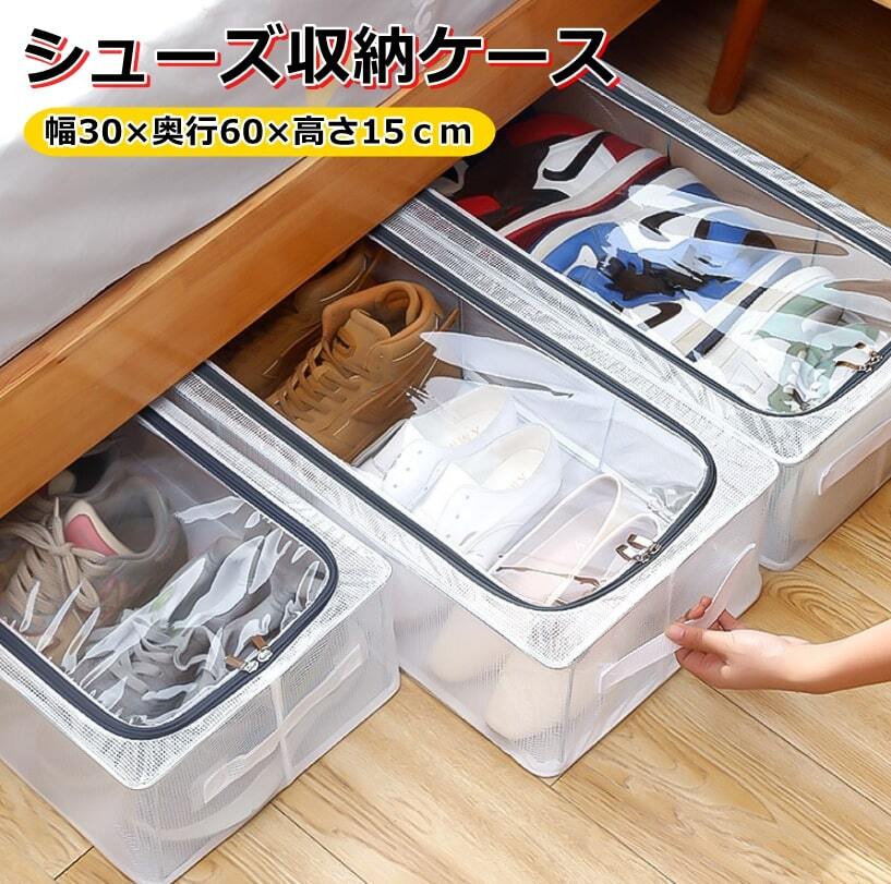 大きめサイズで大容量、ハイカットスニーカーやパンプス、ブーツ、お子様の靴などを入れ玄関に積み重ねて靴箱に、靴以外にも洋服や本、おもちゃ、趣味のコレクションケースとして、ほこりや汚れ防止にもなります。