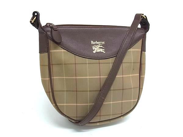 1円 Burberrys バーバリーズ キャンバス×レザー クロスボディ ショルダー 斜め掛けかばん レディース カーキ系×ブラウン系 GB1946