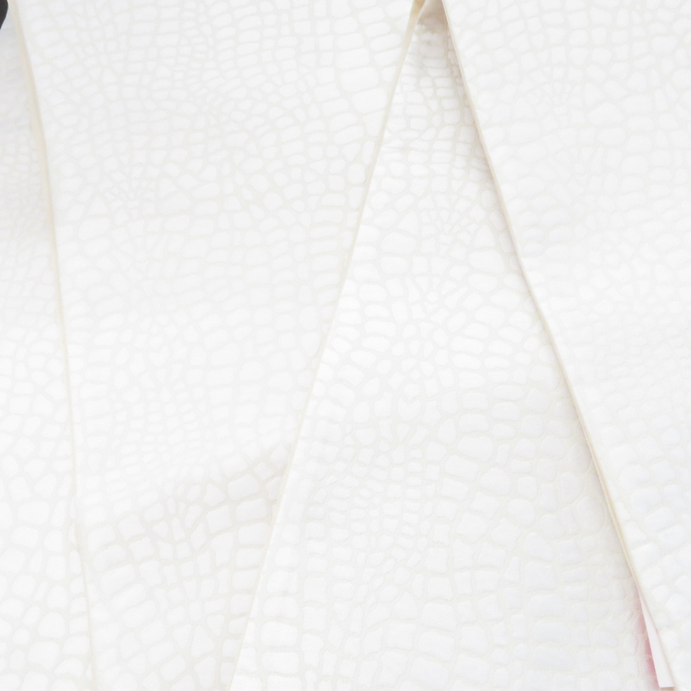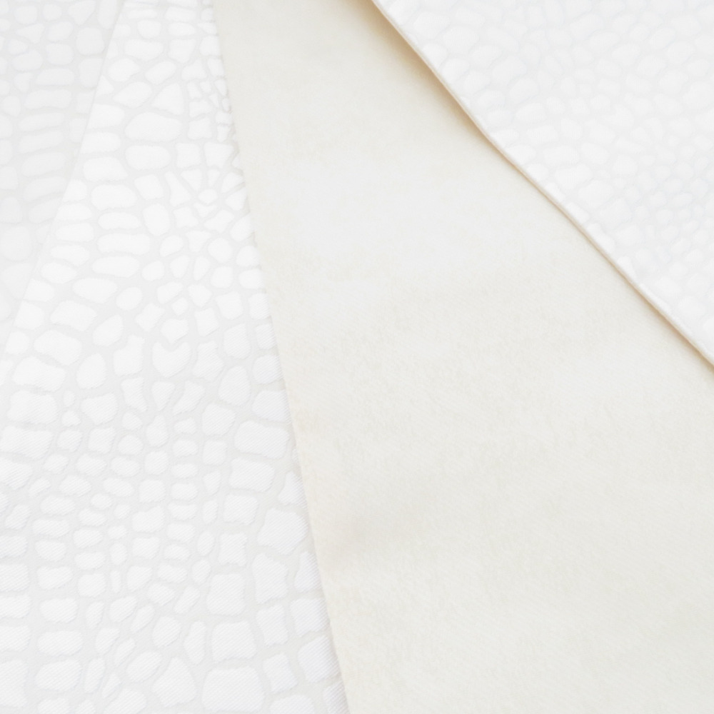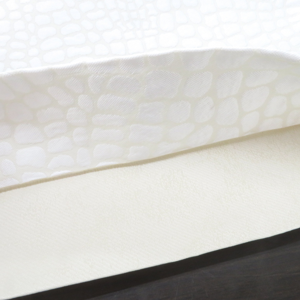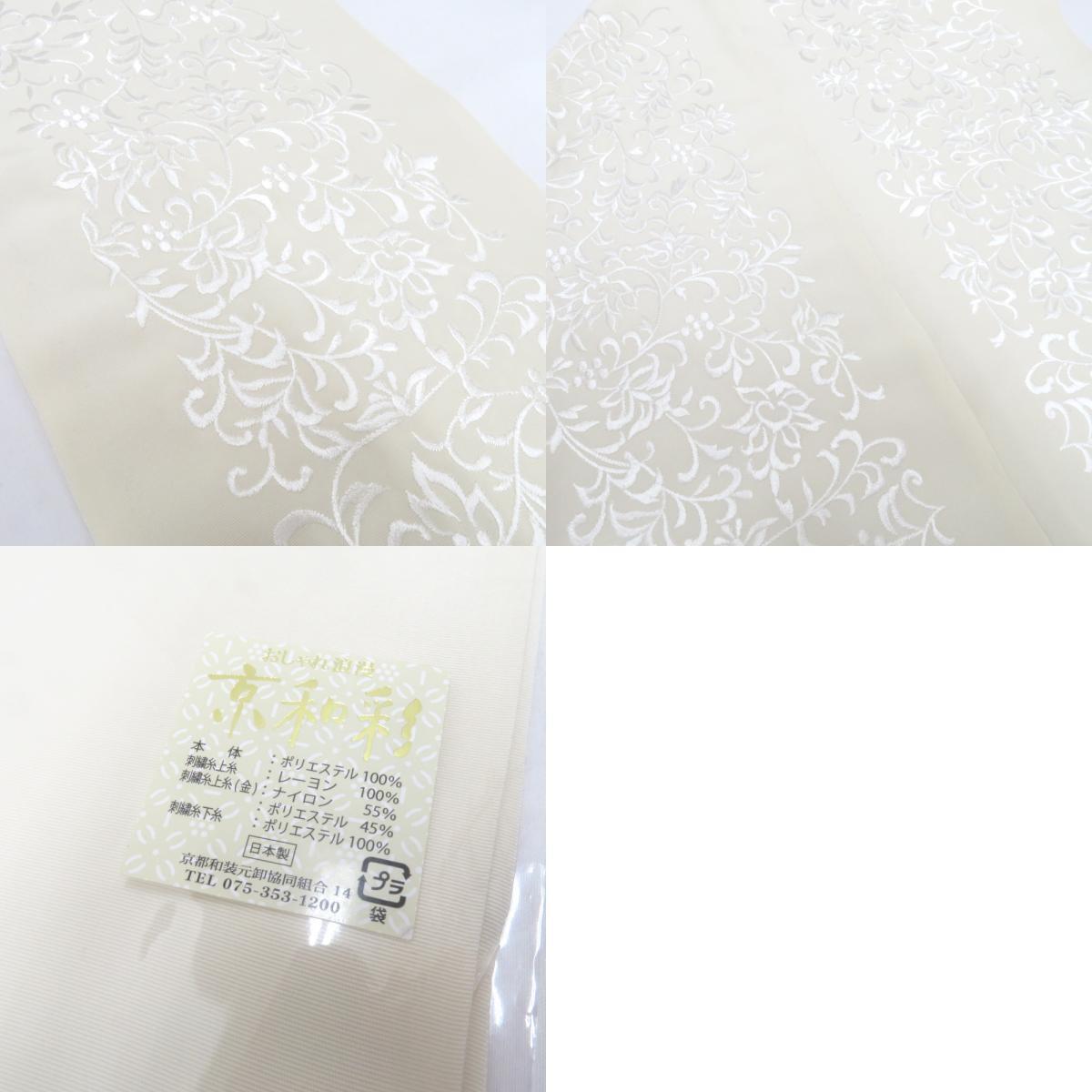 | 袋帯 刺しゅう半衿おまけ付き 振袖用 ホワイト×シルバー 型押し調 白 全通柄 ポリエステル フォーマル Freek 日本製 長さ460cm 新品 |