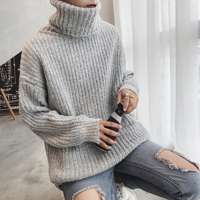メンズ セーター ハイネック 長袖 トップス ファッション カジュアル タウンユース グレーXL