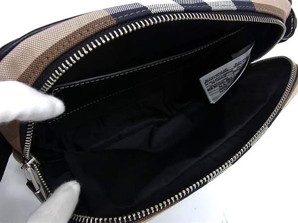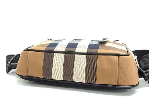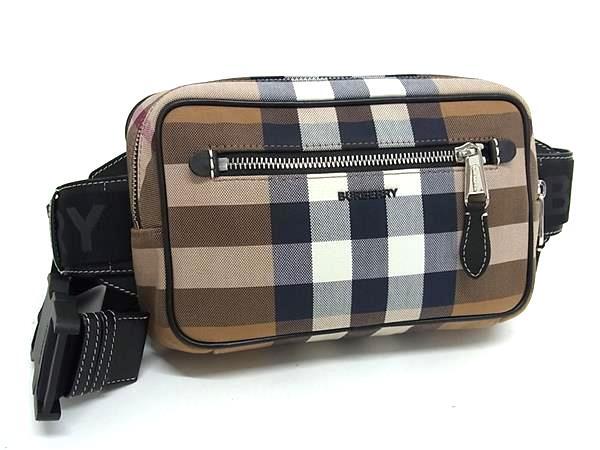 1円 ■美品■ BURBERRY バーバリー キャンバス チェック柄 クロスボディ ショルダーバッグ ウエストバッグ ブラウン系×ブラック系 FR5403