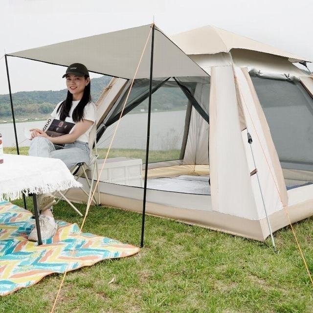 テント ワンタッチテント ワンタッチ式 キャンプ 簡単設営 窓口あり メッシュ付き 210D 二重防水 防風 UVカット UPF50+ 3~4人用テント