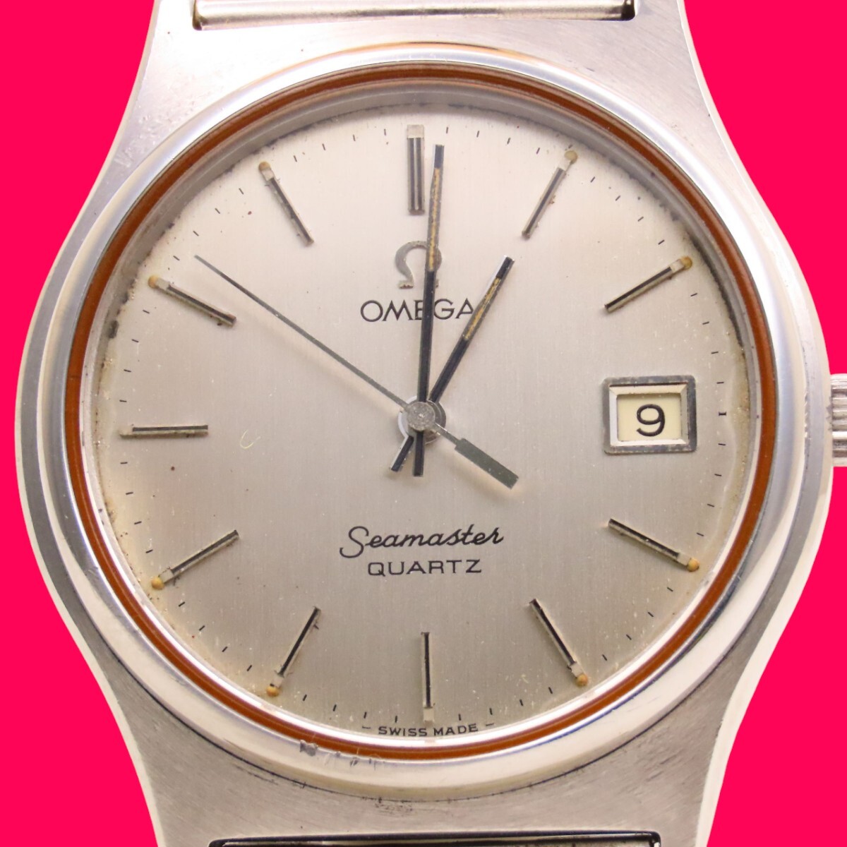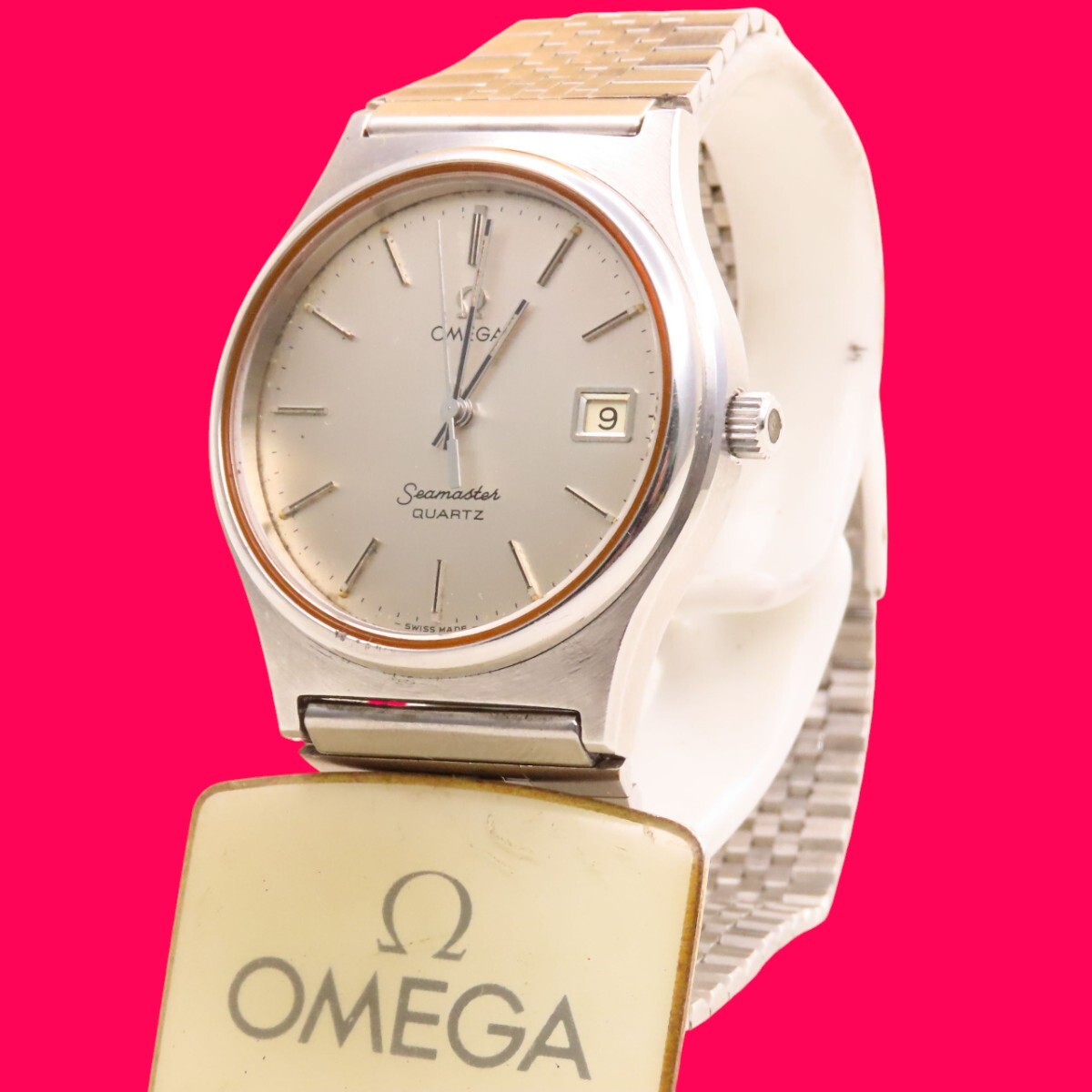 ■♪価格高騰! 資産価値!稼働 電池新品 メンズ ビンテージ 高級超レア! OMEGA オメガ シーマスター Seamaster デート クオーツ フルオリジナル