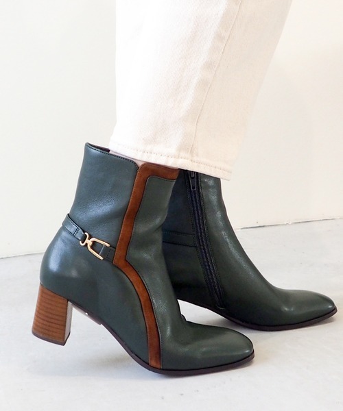 キーワード:ブーツ レディース ショート チャンキーヒール ヒール プレーントゥ 秋 冬