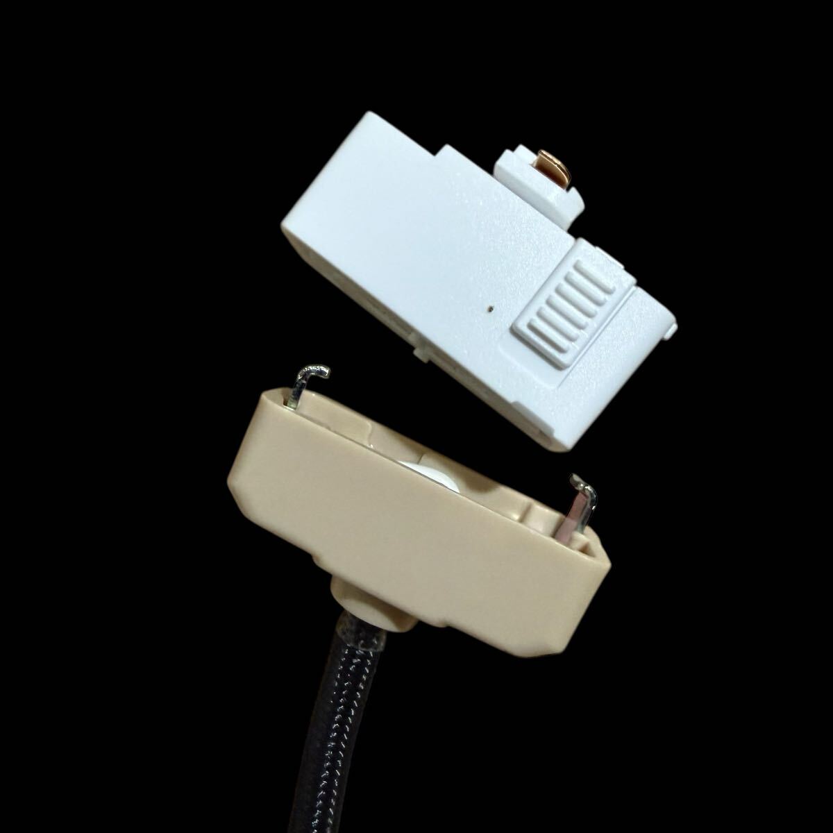引掛けシーリングからライティングレールに変換できる変換部材もついているのでどのようなタイプの給電方式でも対応できるようになっています。