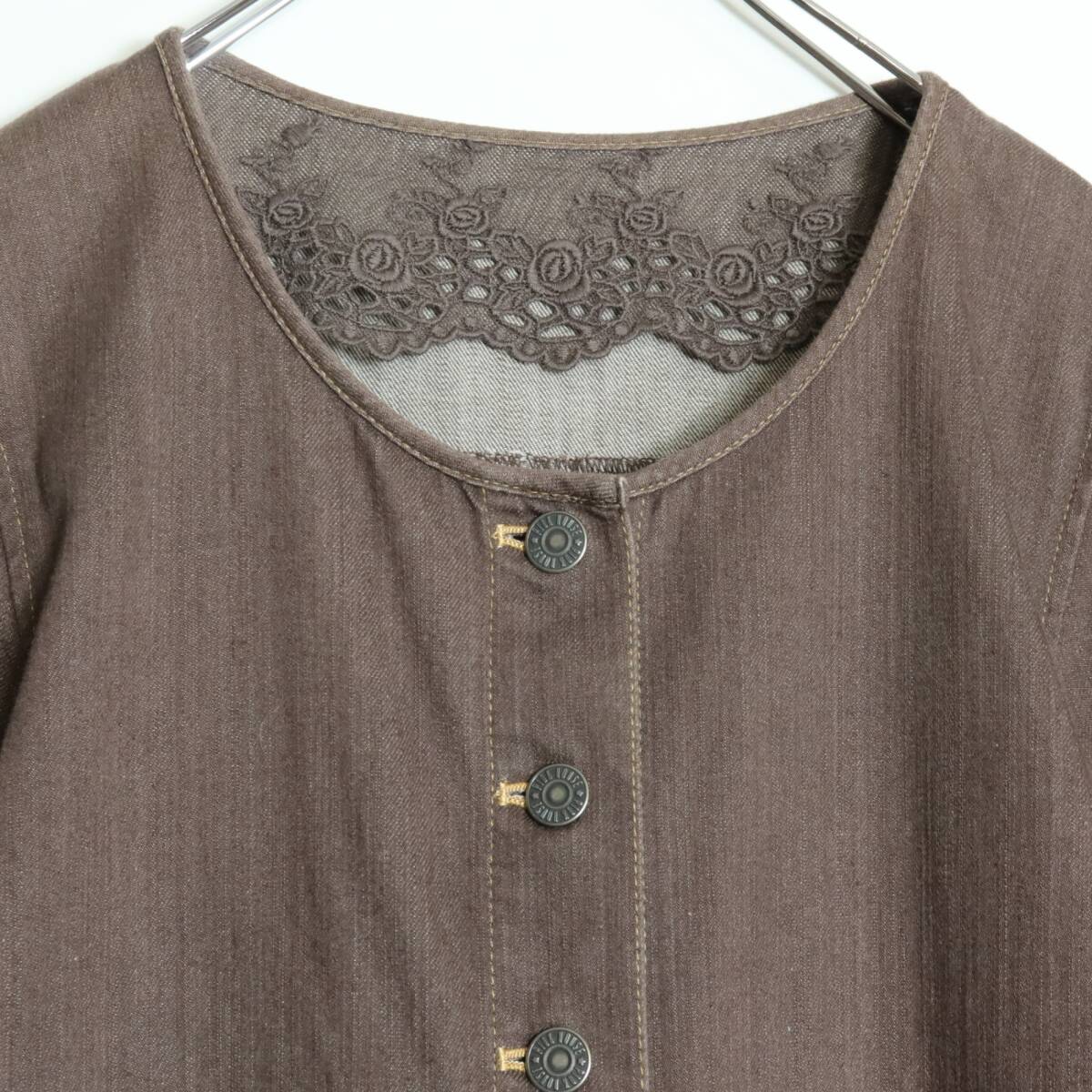 | 商品説明 | 【実寸約】肩幅38袖丈57.5バスト94着丈108(cm) 【サイズ表記】 なし。実寸をご参照くださいませ。 【素材】 綿95ポリウレタン5% 【状態】普通の使用感のあるお品物 【デザイン】ブラウン系 デニムの長袖ワンピースです。 厚手/無地・襟ぐり裏に刺繍付きチュールレースあり ポケットあり/フロントオープン |