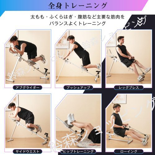 • 【1台で全身6種目トレーニング可能】プッシュアップ・レッグプレス・サイドウエスト・ヒップトレーニング・ローイングの6役を1台に集約!太もも、ふくらはぎ、腹筋、側腹部、ヒップなど主要筋肉を効率よく鍛えられます。初心者から上級者まで幅広く対応。