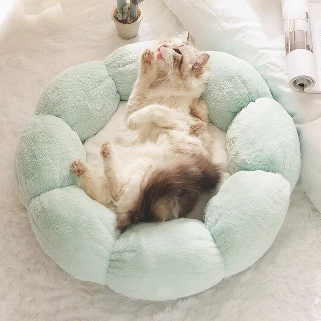 サイズ: M:45CM (体重約4kg以内のペット対応) L:55CM (体重約9kg以内のペット対応) 猫や小型犬に適した居心地のペットベッドです。ペットが楽に出入りできるようにデザインしております。 安心な素材を使用しております。柔らかい生地のフチは空間を暖かくし、ペットが頭を乗せられる快適なヘッドレストとしても機能します。柔らかい生地で空間を暖かくし、手足が伸ばしやすく,もっちりとした感触の柔らかベッドがネコと犬の体をやさしく包まれ、ふんわり支えます。フカ~フカで弾力性があり、とっても気持ちが良いです。 底面には滑り止めのドリップモールドを施し、湿気を防げ、摩擦抵抗を増加させ、ベッドが滑りにくくなっています。