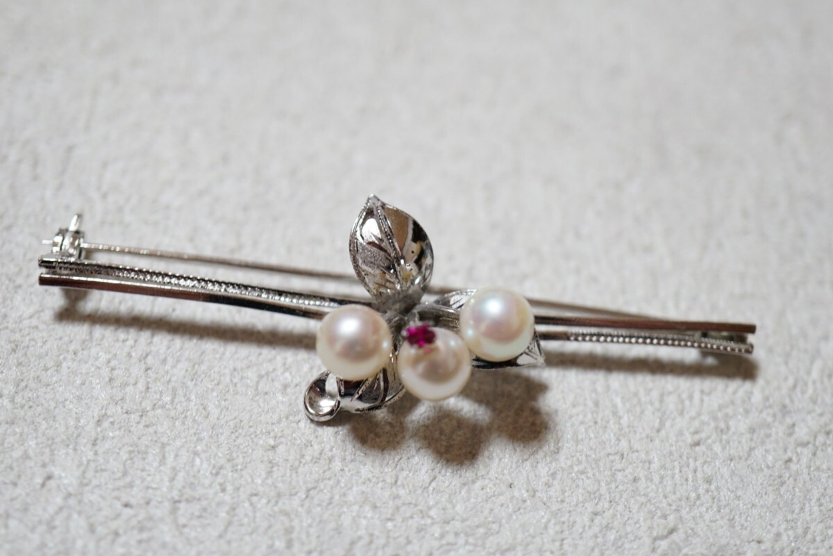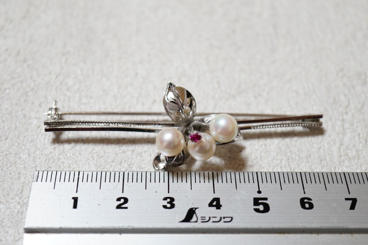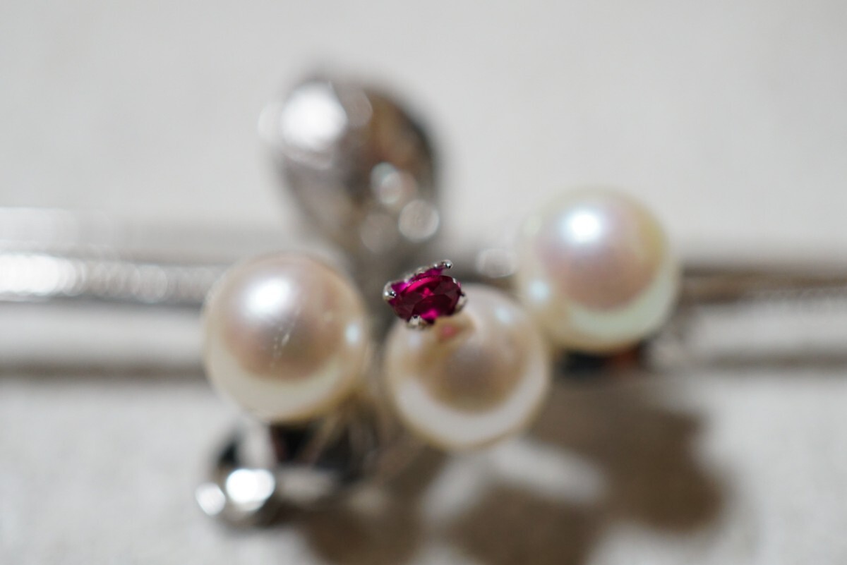 606 天然ルビー アコヤ真珠 本真珠 パール シルバー ブローチ ヴィンテージ アクセサリー SILVER刻印 冠婚葬祭 あこや 装飾品