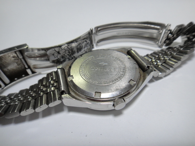 時計店で一個物として発見。大きなダメージはありませんが、傷欠け多いです。日にちの早送りが引っかかってます。ベルト内径17.5cm。裏蓋に微かに凹んだような歪があります。分解掃除前提で慎重に入札をお願いいたします。文字板、インデックス、針は綺麗です。大切にしてくださる方に。よろしくお願いいたします。