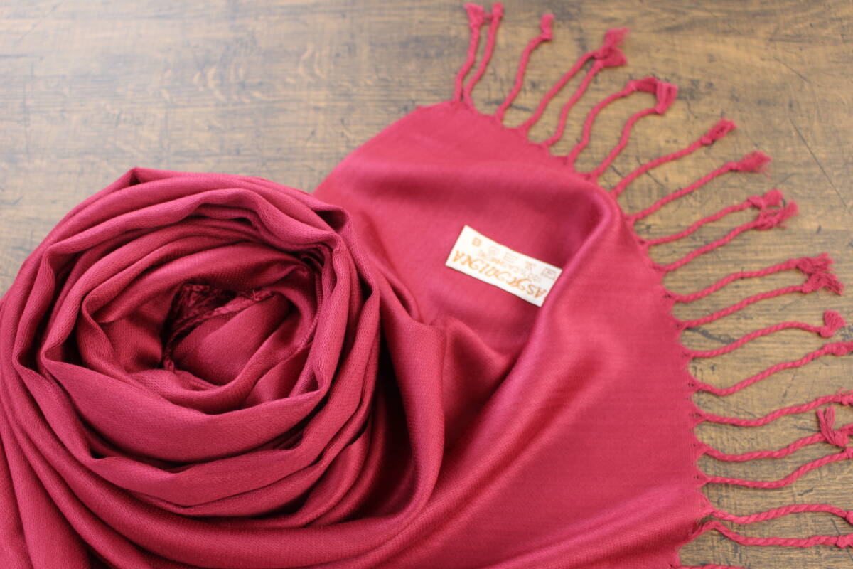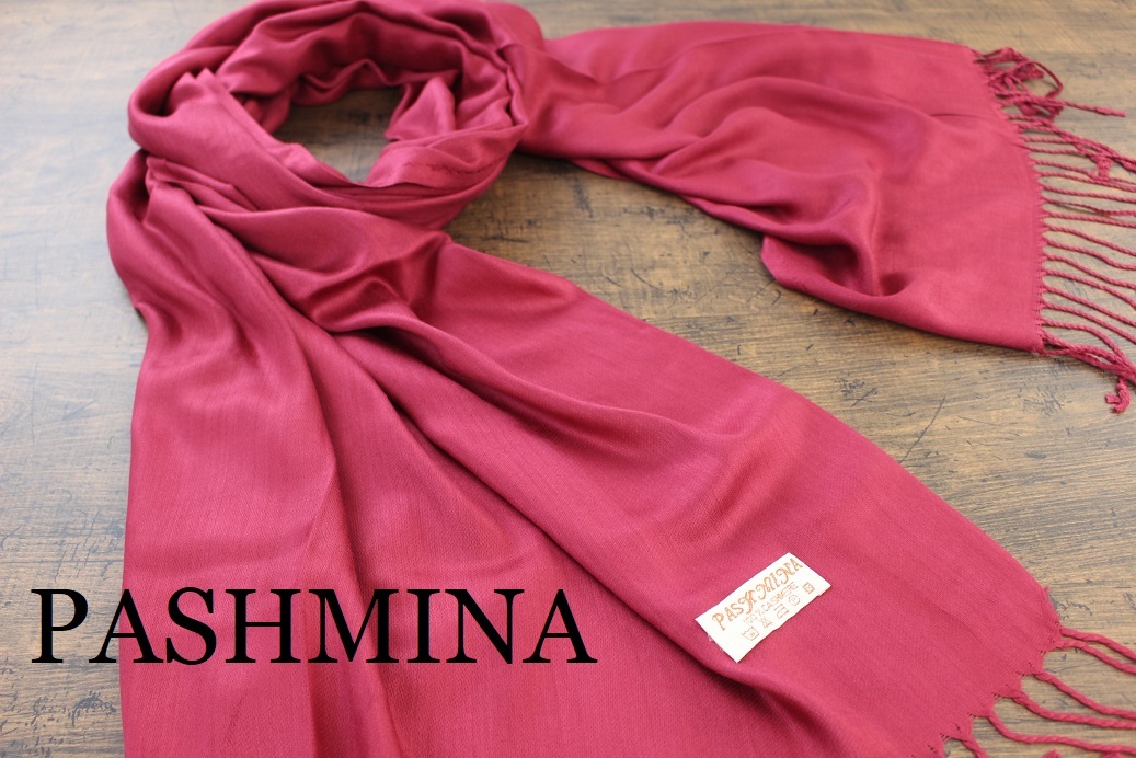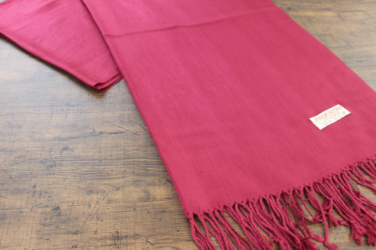 新品【パシュミナ Pashmina】無地 ワインレッド W.RED 紅赤 Plain 大判 ストール カシミア100% Cashmere 訳あり