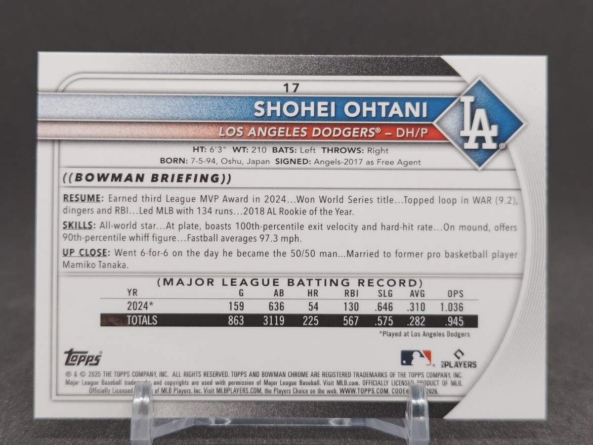 大谷翔平 99枚限定 グリーン 2025 Topps Bowman Chrome #17 Green Refractor Shohei Ohtani トップス クローム パラレル ドジャース