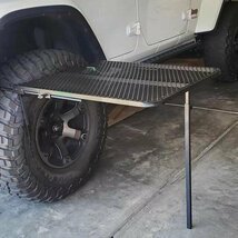 【材質】:アイアン 【対応タイヤ】 タイヤテーブル 取り付け簡単、工具やヒッチは不要。車のタイヤに取り付けることができます。タイヤとフェンダーの間に約5CMの隙間が必要です。