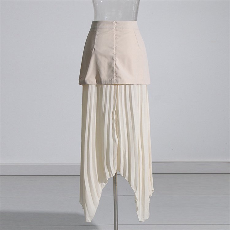 ロングスカート フリル プリーツ きれいめ フリンジ シンプル カジュアル お出かけ レディース XL ベージュ