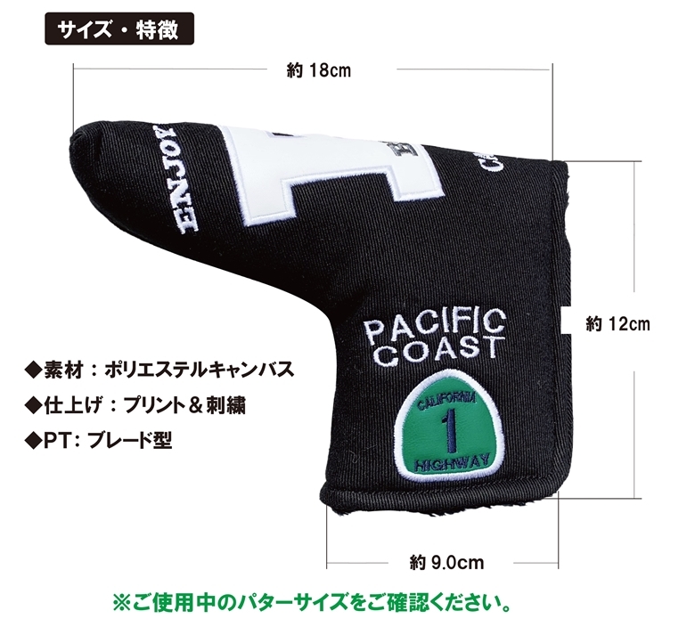 ■2送料無料オークション♪【PHCブレード型-ブラック】ブルーティーゴルフ 【PCH SERIES パシフィックコーストハイウェー】パター用カバー