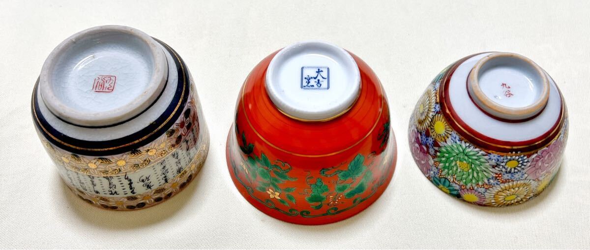 画像3左(九谷焼金彩詩文):直径約7.5cm、高さ約6cm