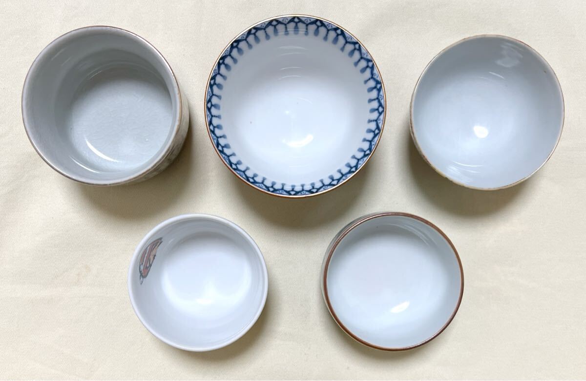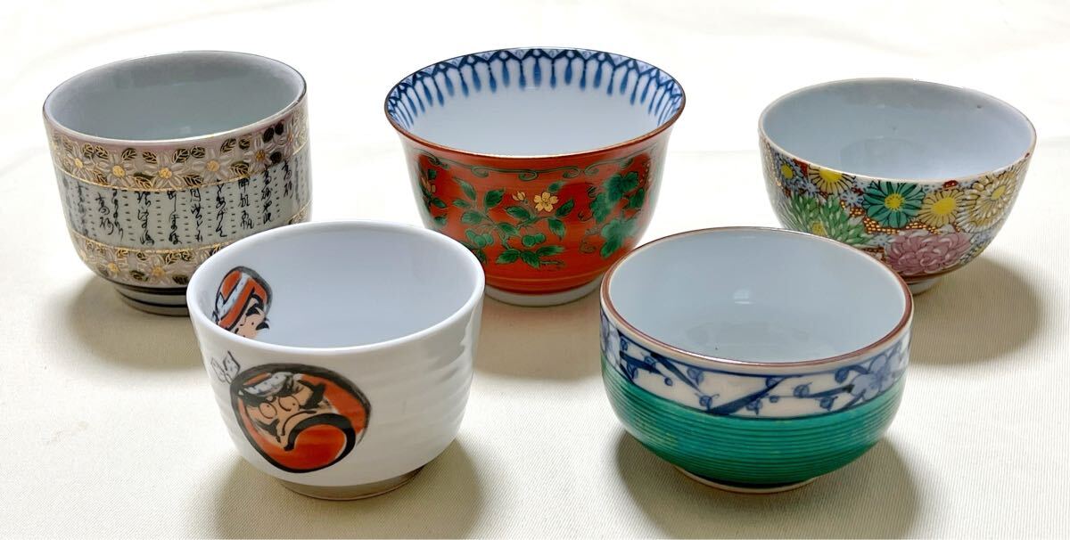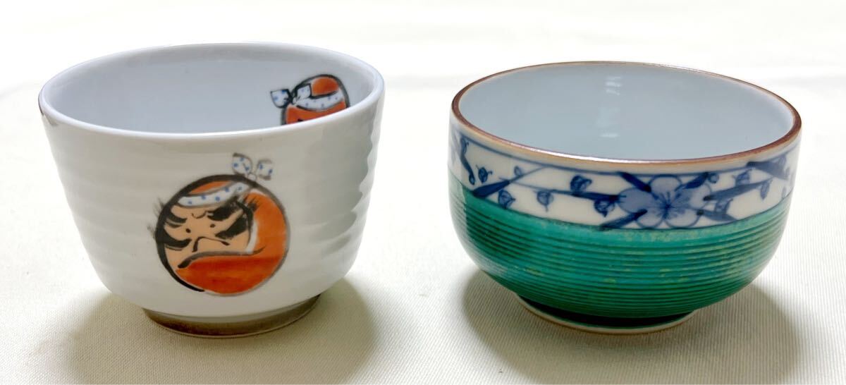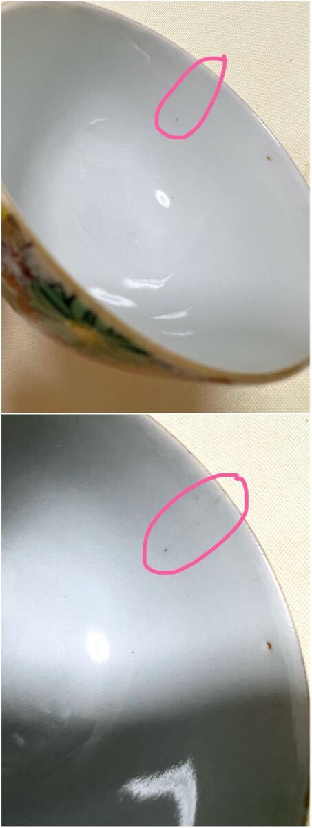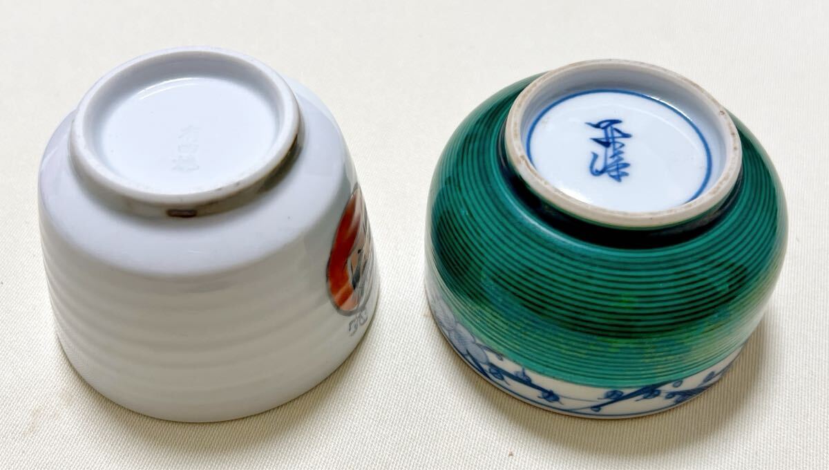 画像3右(九谷焼花詰):直径約7.5cm、高さ約5cm(貫入がある)
