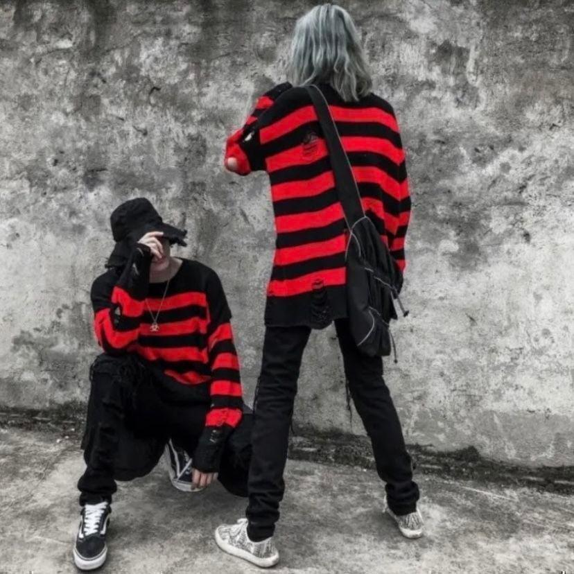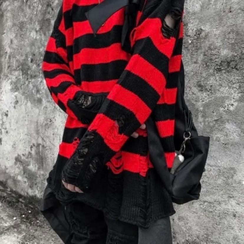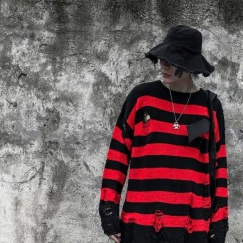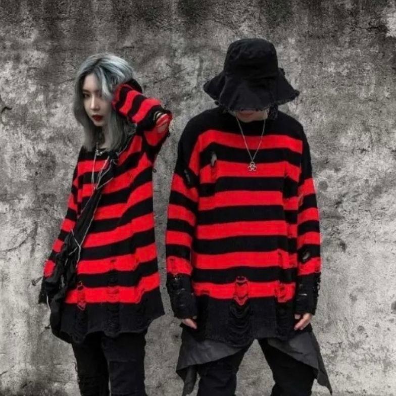 韓国 ゆるニット グランジ パンク ユニセックス ビッグシルエット ビックシルエット ロック