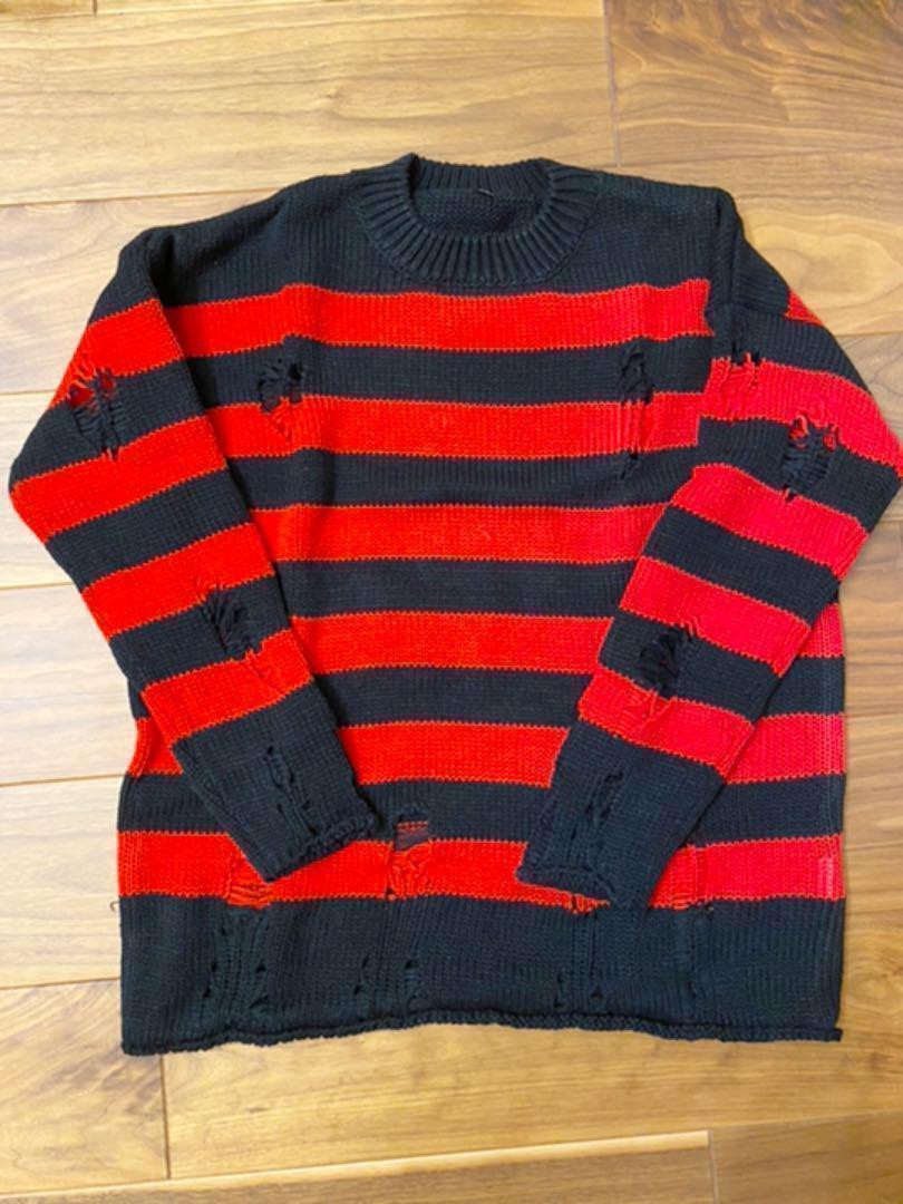 ユニセックスで使える韓国風ボーダー柄ニットです♪