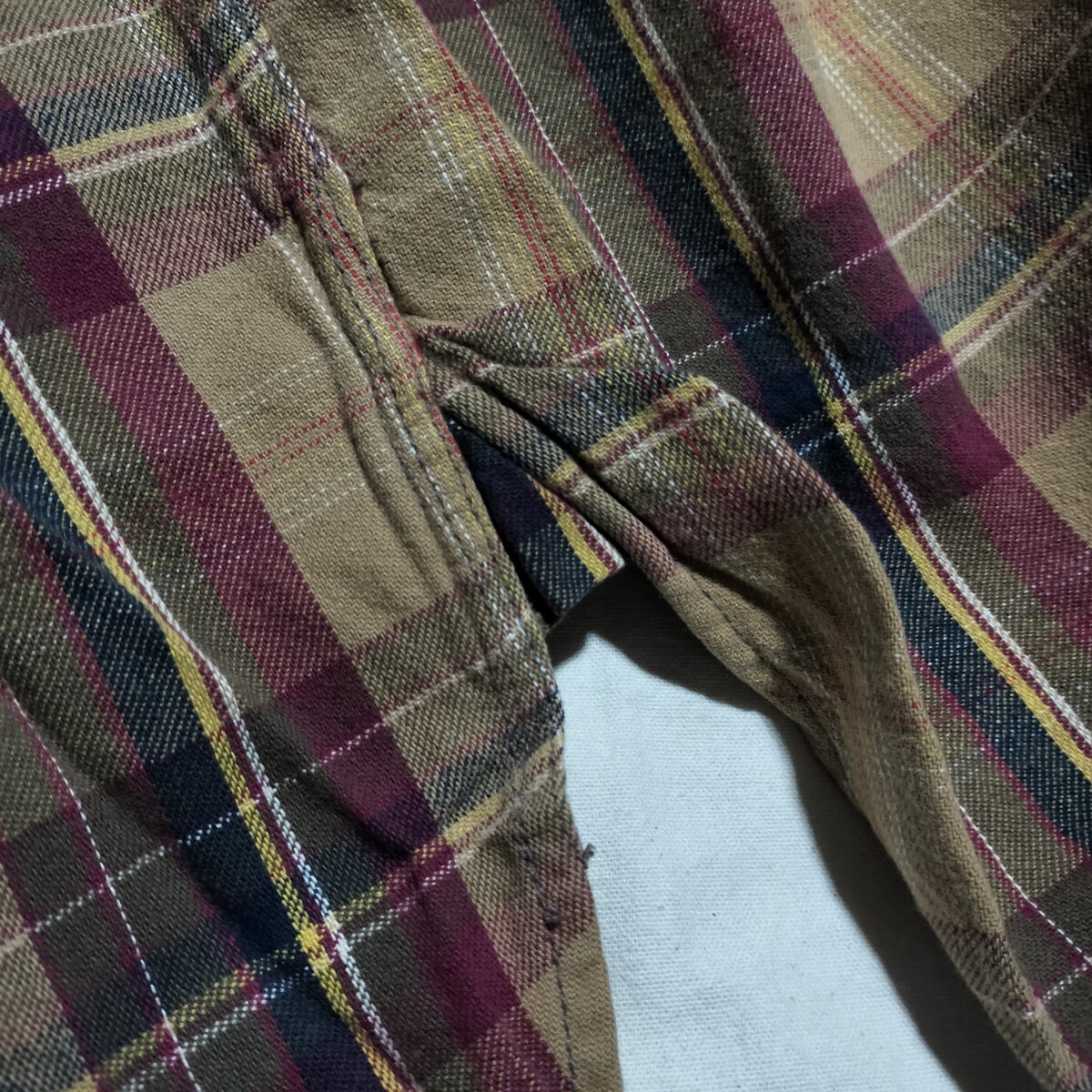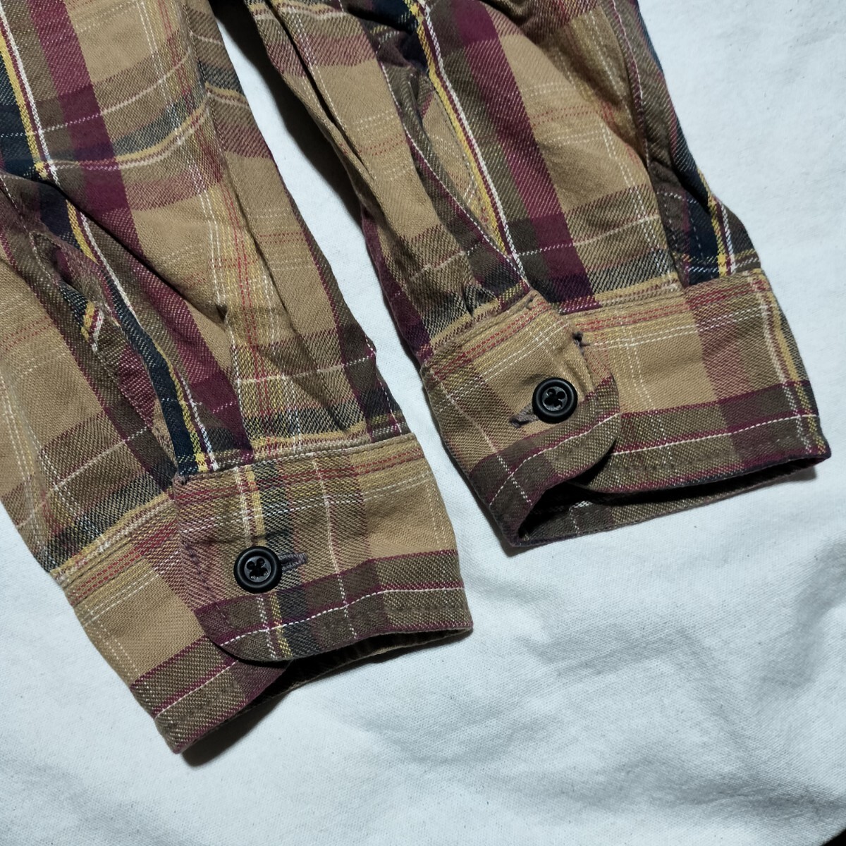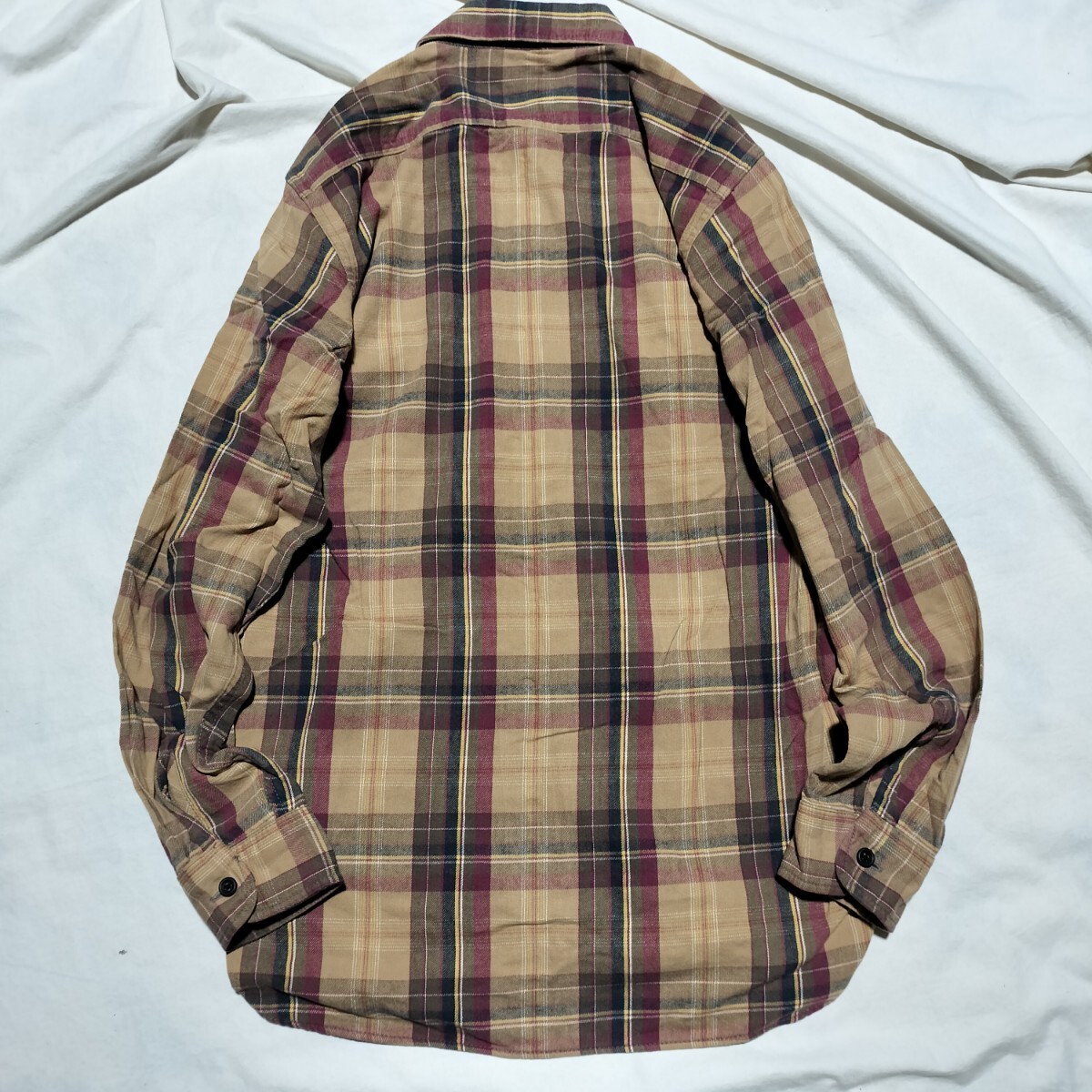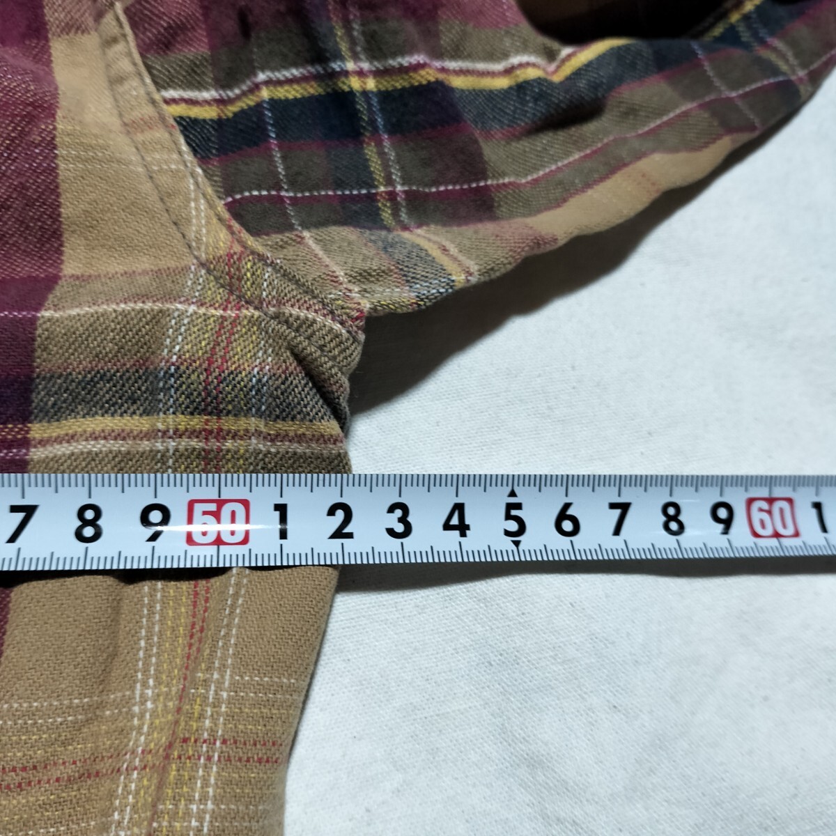 ご覧いただきありがとうございます。実寸平置きサイズ(着丈、脇の下幅)は画像のメジャーでご確認下さい。中古のため多少の使用感などご理解頂ける方のみの入札でお願いします。