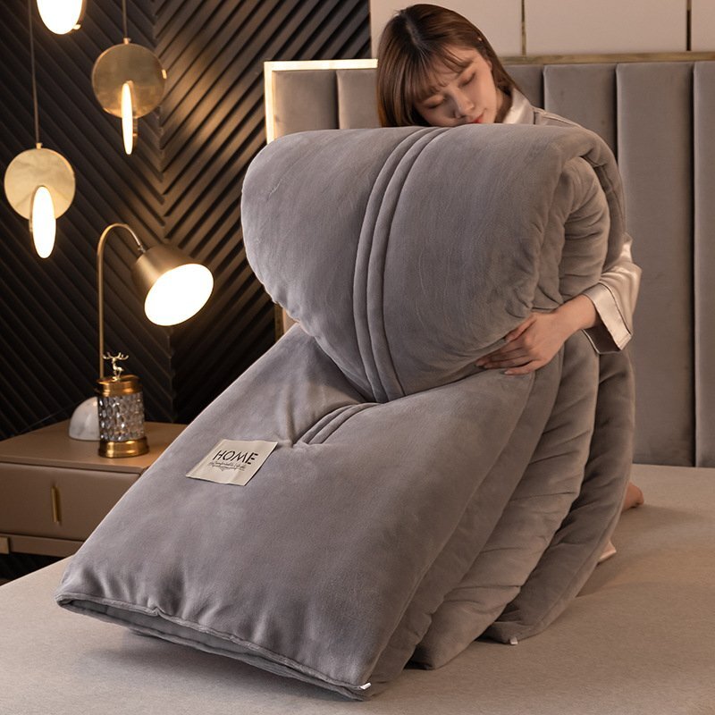 ボア掛け布団 掛ふとん 保温 あったか フランネル 暖かい ふわふわ もこもこ 柔らかい 吸湿 防寒 グレー 180cmx220cm 冬用重量約4KG