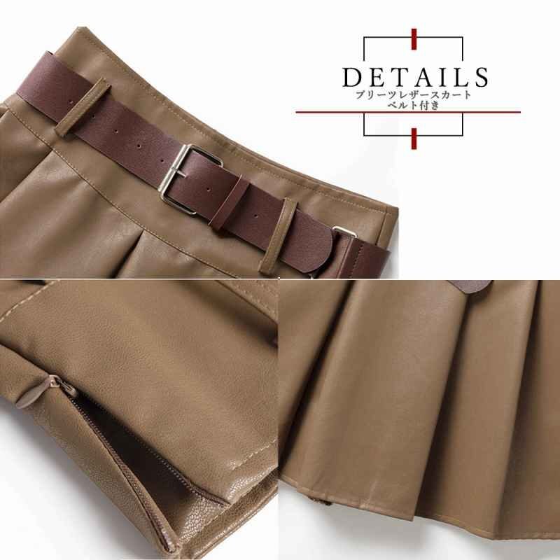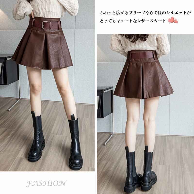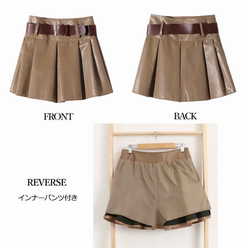 ふわっと広がるプリーツならではのシルエットがとってもキュートなエコレザーミニスカート。パンツ型の裏地付きで動いても安心です。