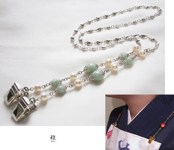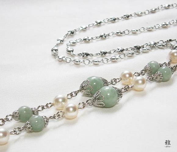 【 雅 】 天然石本翡翠*天然貝パール*オリジナルディナークリップ S
