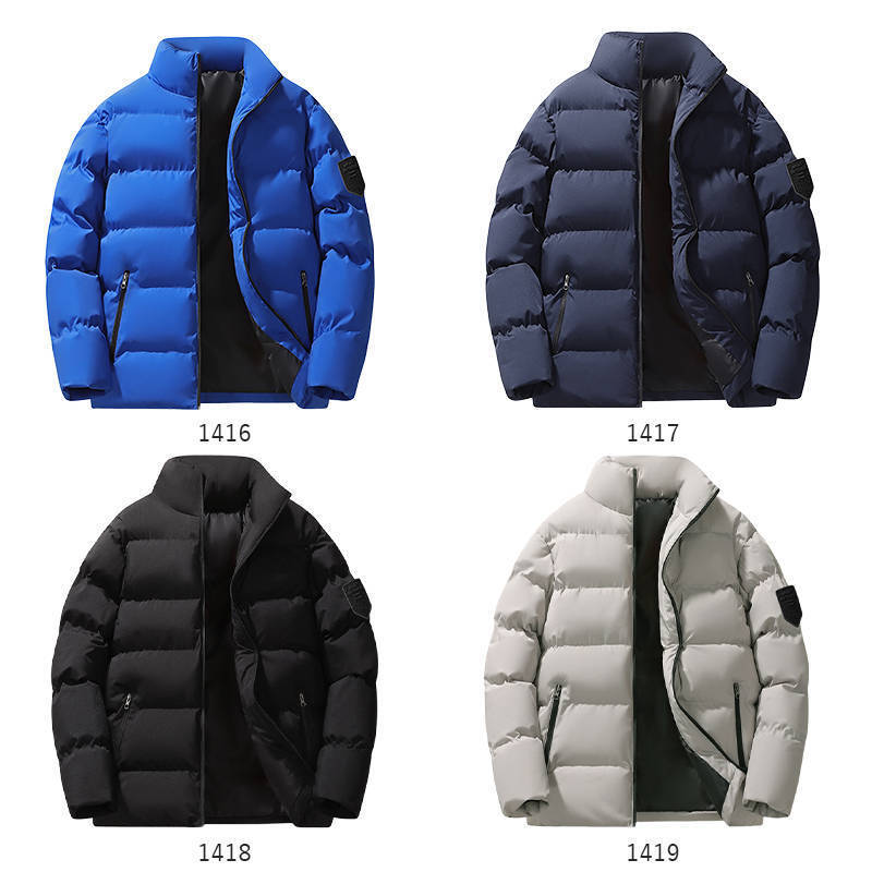 1416-4XLブルー 中綿ジャケット メンズ 立ち襟 ブルゾン 新品DCKMANY 暖かい 防寒 厚手 冬服 カジュアル キルティング ショート丈 アウター
