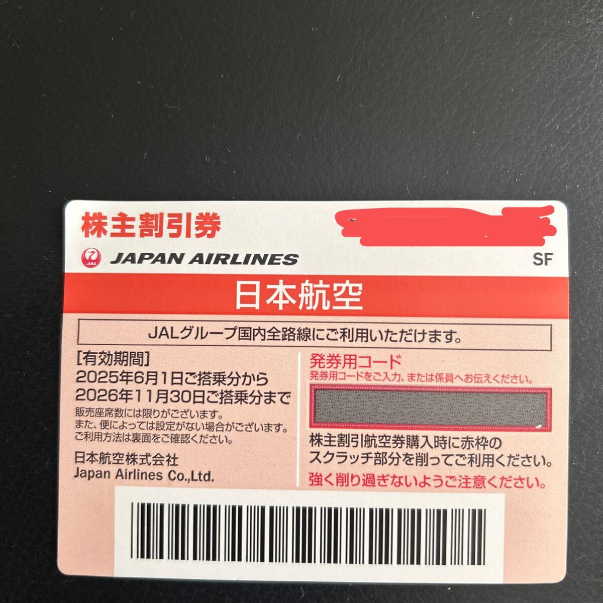 JALの株主優待券になります。