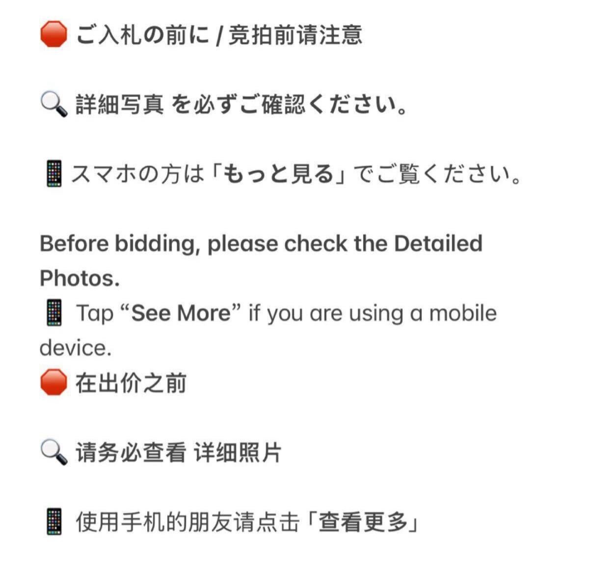 Ⅵ.弃标也必须全额支付该拍品(成交价+消费税+银行转账费+日本邮费+代购费)。
