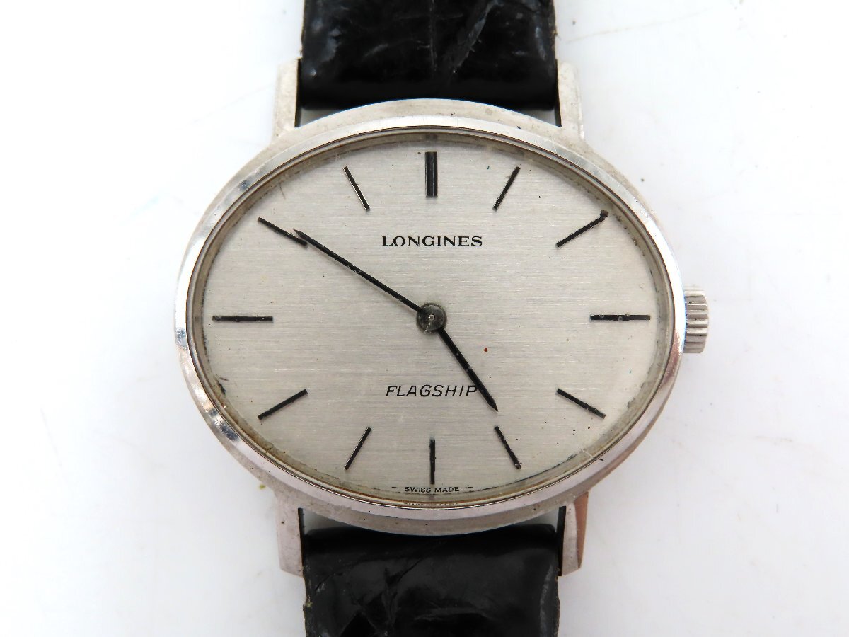 1円 ロンジン フラッグシップ SS/革 シルバー文字盤 レディース 稼働 手巻 2636001 BRS