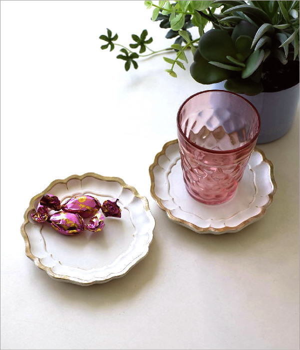 | レジン製のコースター2個セットは おもてなしのシーンに華をを添える 可愛い花型モチーフ クリーミーなカラーに ゴールドの縁取りが上品に煌めく エレガントなデザインで 重厚感と高級感が漂います カップやグラスにはもちろん アクセサリーの一時置きや LEDキャンドルをのせても。 商品名 : レジンコースター フルール 2枚セット 商品番号 : vin3617 1枚のサイズ(cm) : 幅11.5×奥行11.5×厚み1.5 材質 : ポリレジン 重量 : 各)120g 生産国 : 中国 ※2枚セットです ※全体にエイジング加工を施したアンティーク調デザインです ※僅かなガタつき、色のはみ出し等はご容赦ください ※ディスプレイによる色の違いはご了承下さい |