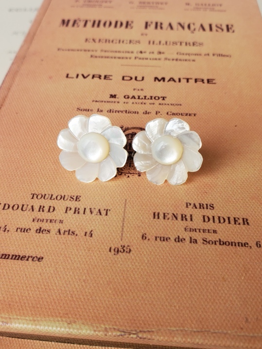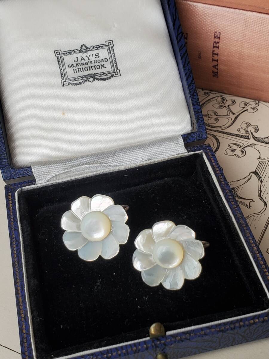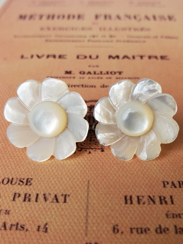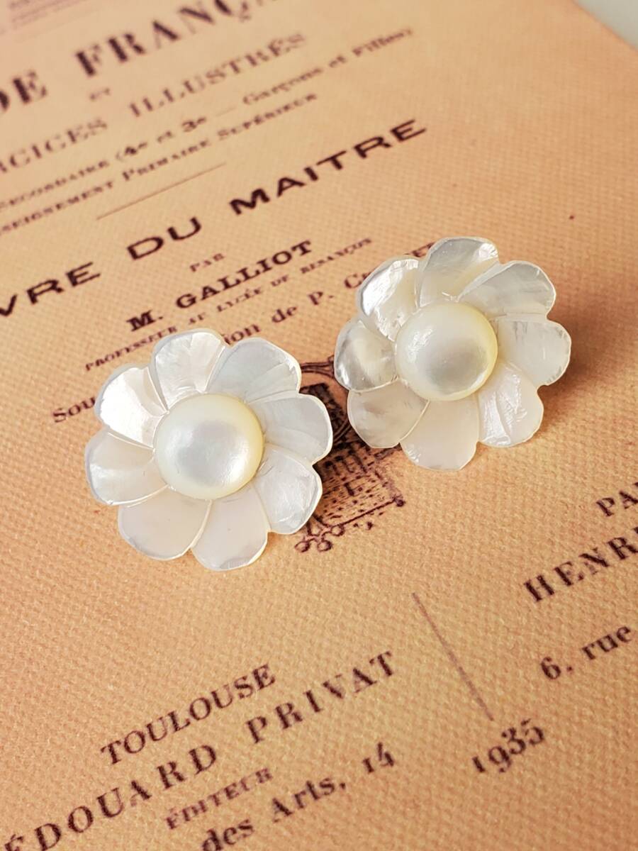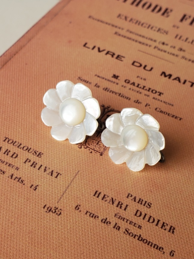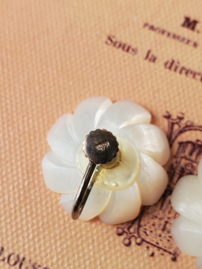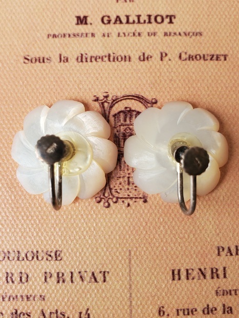 ヴィンテージ マザーオブパール フラワーのシルバーイヤリング ベツレヘムパール銀製